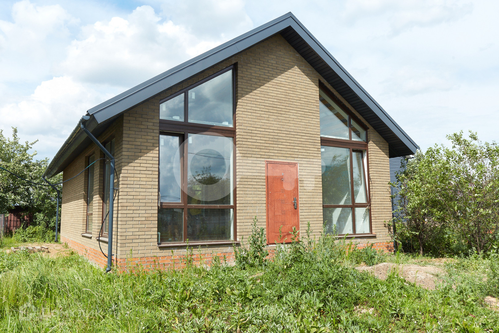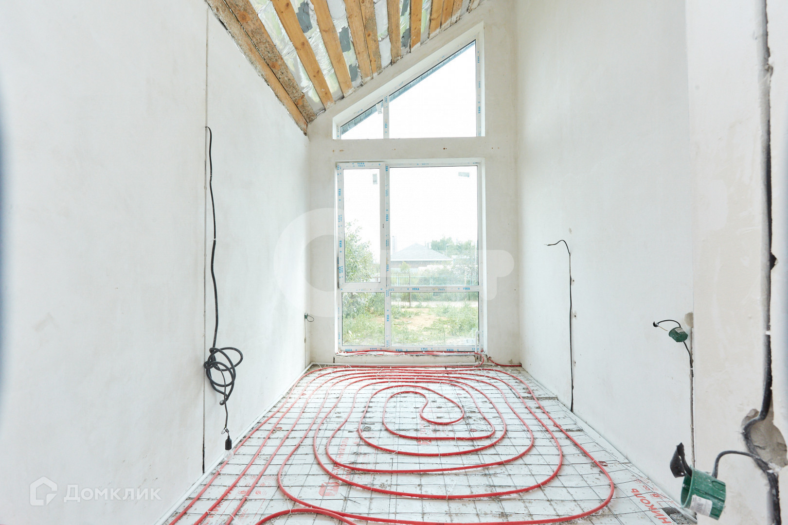 Большая кухня-гостиная, стены выровнены под маяки, теплый пол по всему дому, проведен газ, сделана разводка электрики, водоснабжения и канализации, установлены снегоудержатели, большие витражные окна со вторым светом, мансардный второй полуэтаж, который очень понравится детям.