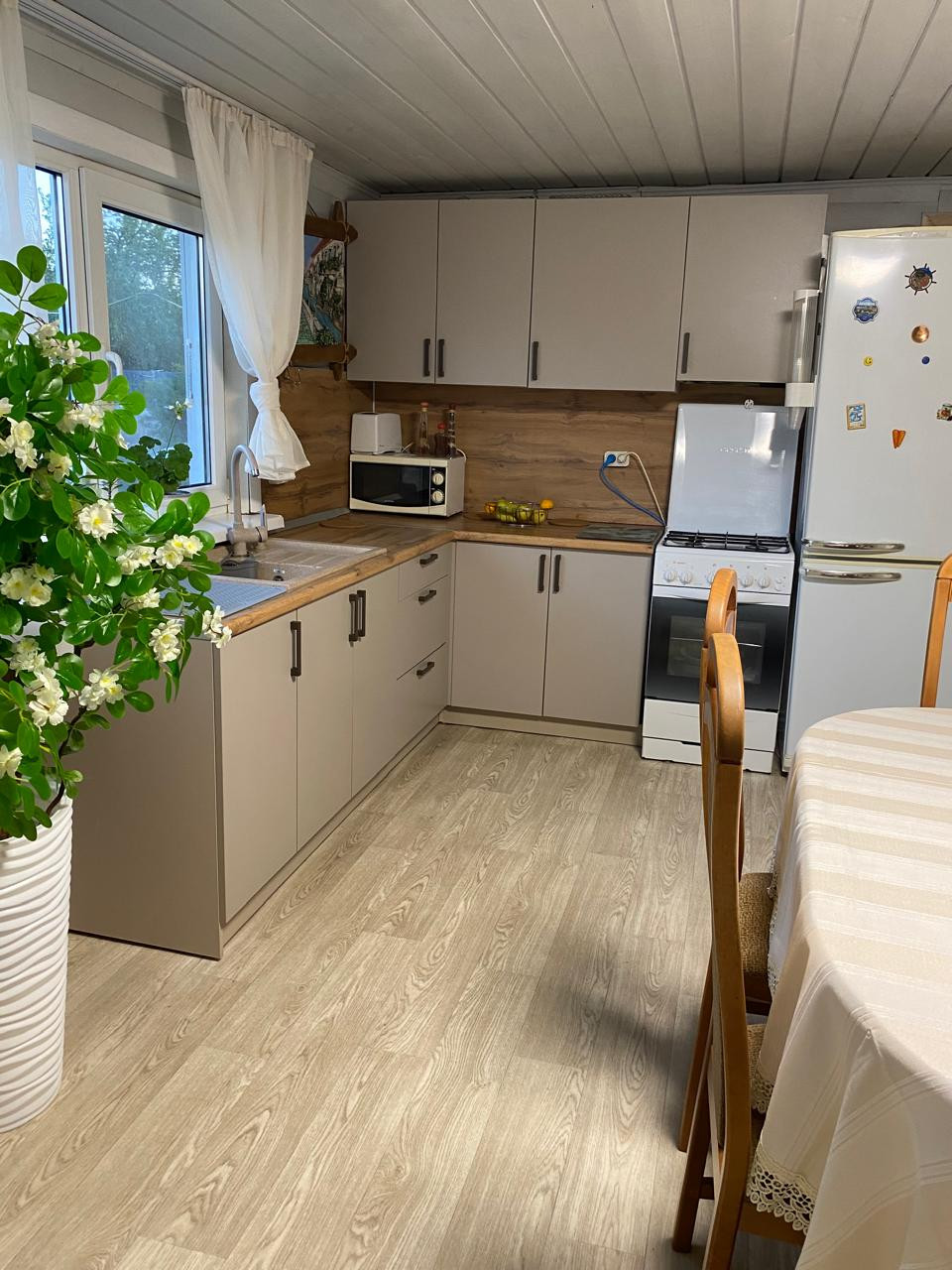 Дом в статусе жилой для круглогодичного проживания. На первом этаже дома расположены кухня-гостиная, санузел и спальня. На втором этаже три спальни. Электричество круглогодичное, на участке имеется своя скважина, газ проведен на участок, осталось провести в дом, имеется парковочное место.