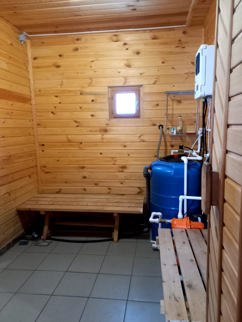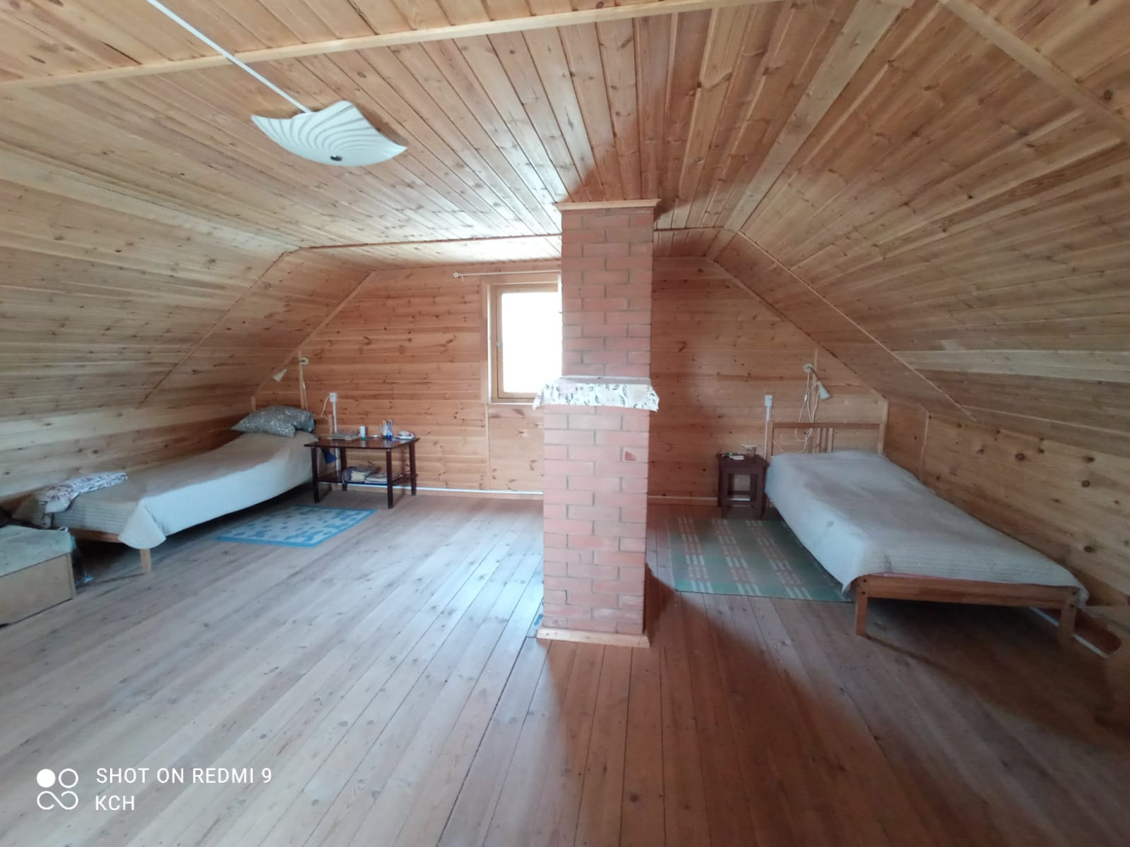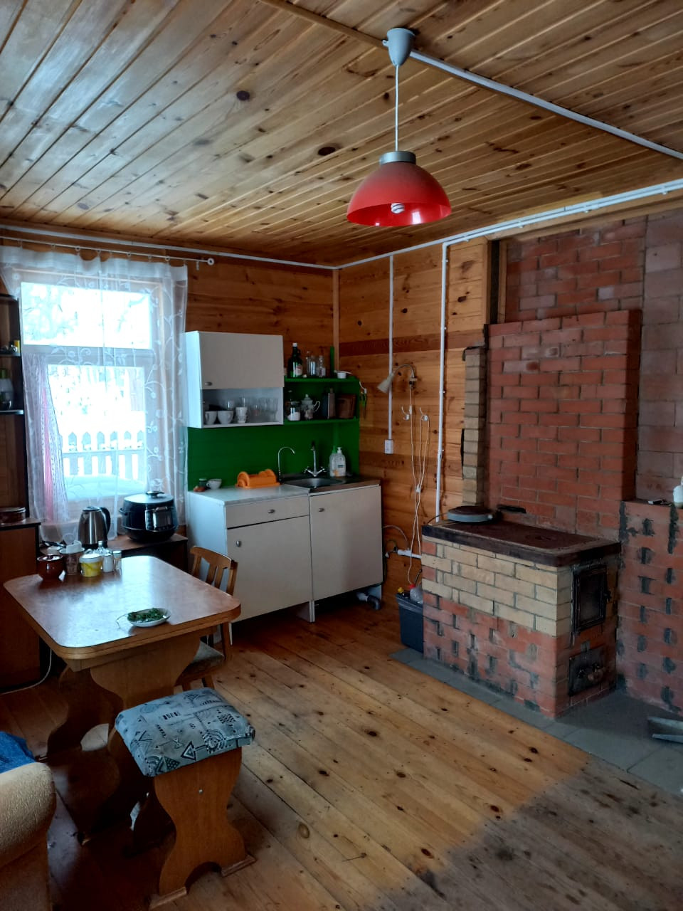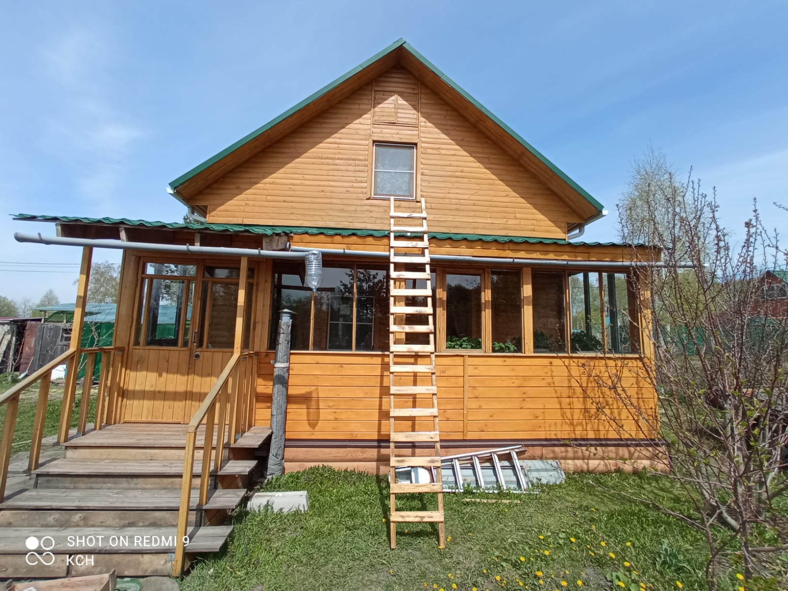 2 этажа, каркасный, утеплитель 100 мм (стены), 150 мм (перекрытия). В доме: гостиная, на втором этаже просторная комната, имеется кирпичная печь, овощехранилище, туалет, баня (обшита вагонкой из кедра), Установлена система очистки с озонированием.