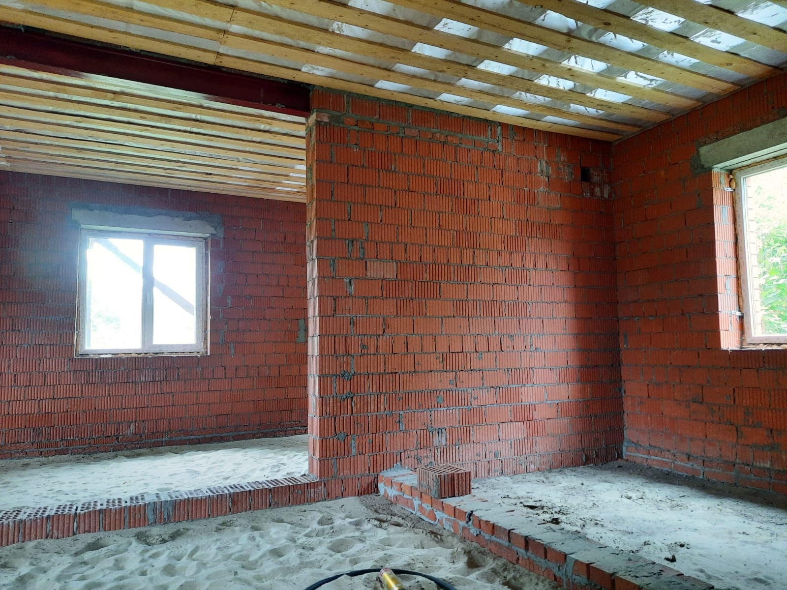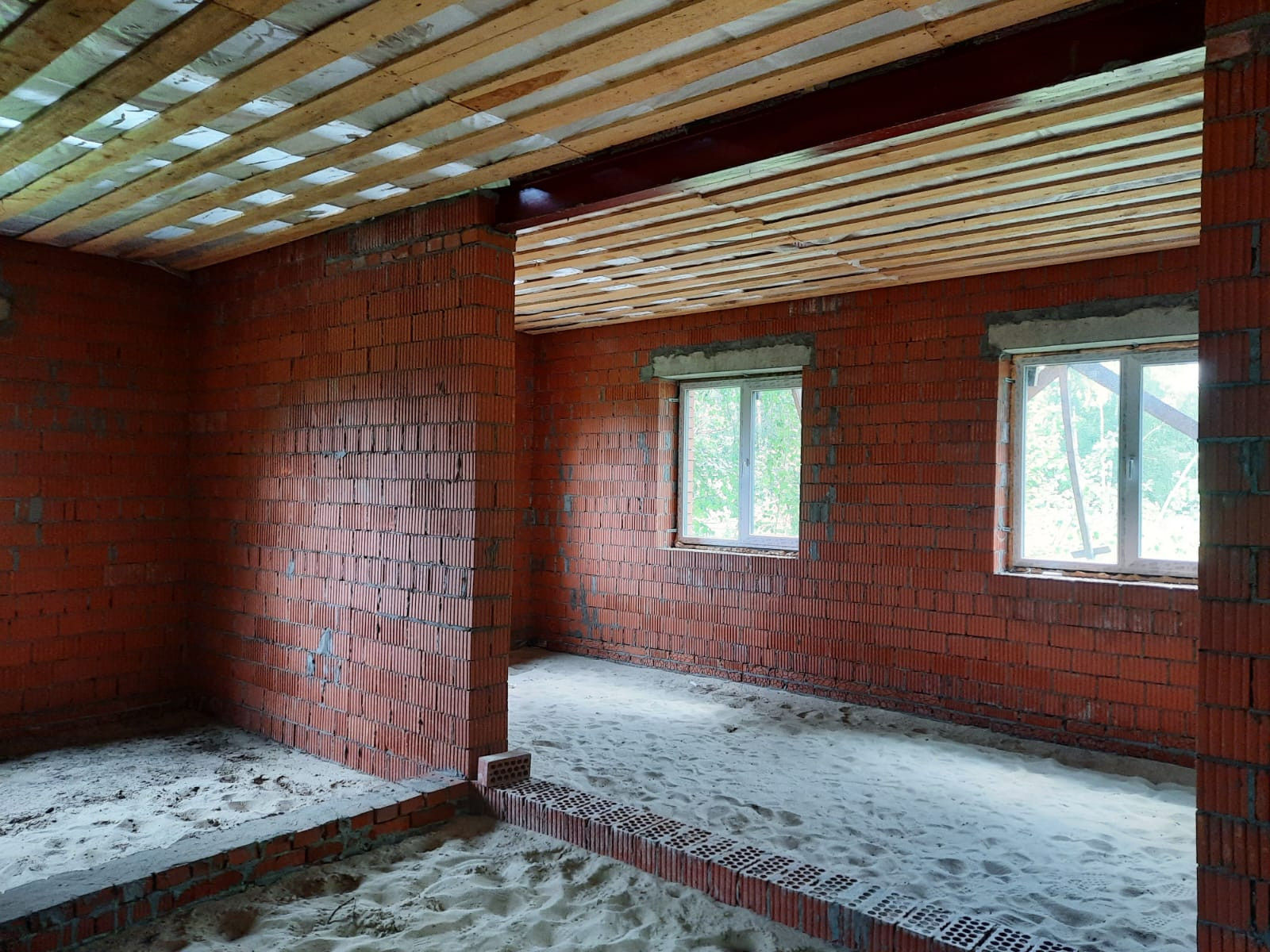 Материал стен – красный кирпич, облицовка – кирпичом.