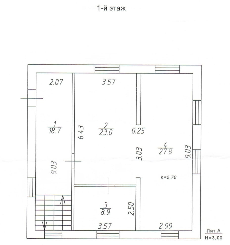Высота потолков на 1м этаже - 3,0 м, на мансарде – 2,48 м