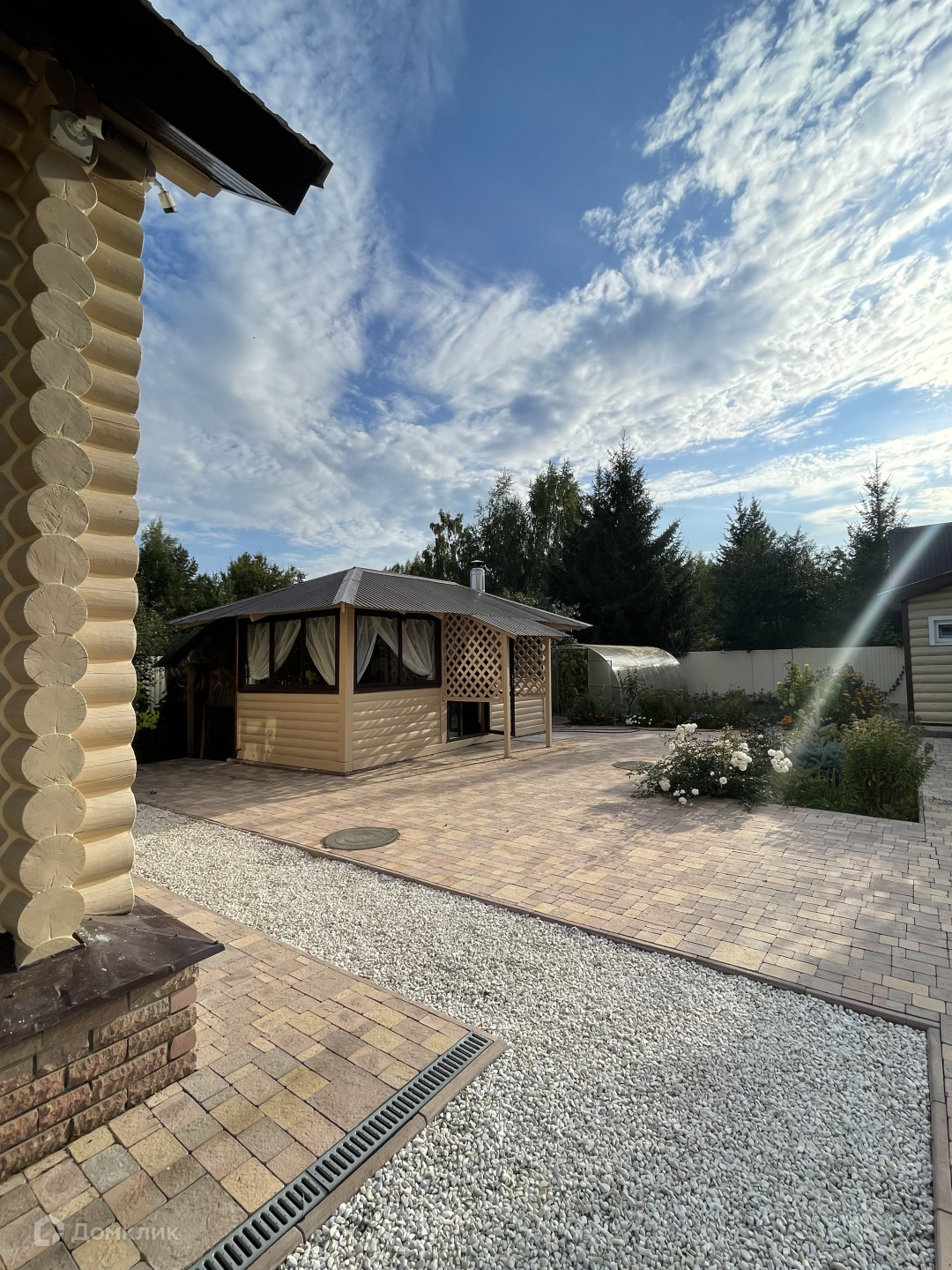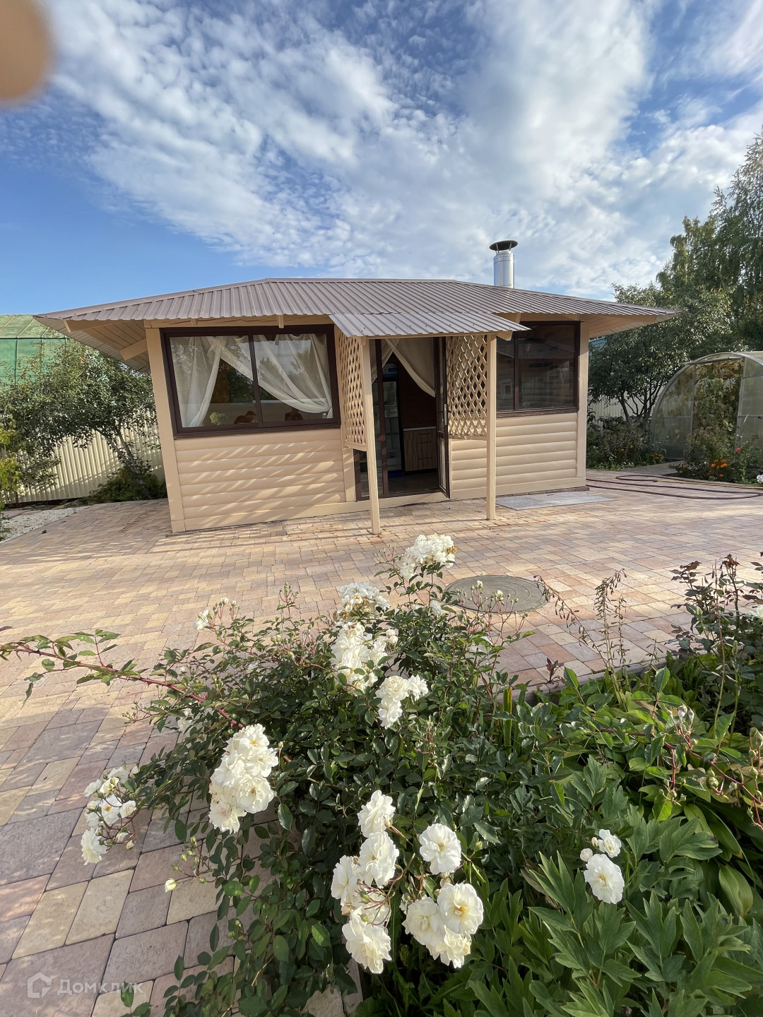Благоустроенный участок 9 соток, правильной формы. Выполнен Ландшафтный дизайн. Дорогая брусчатка. Большая теплица.  Плодоносящий сад.