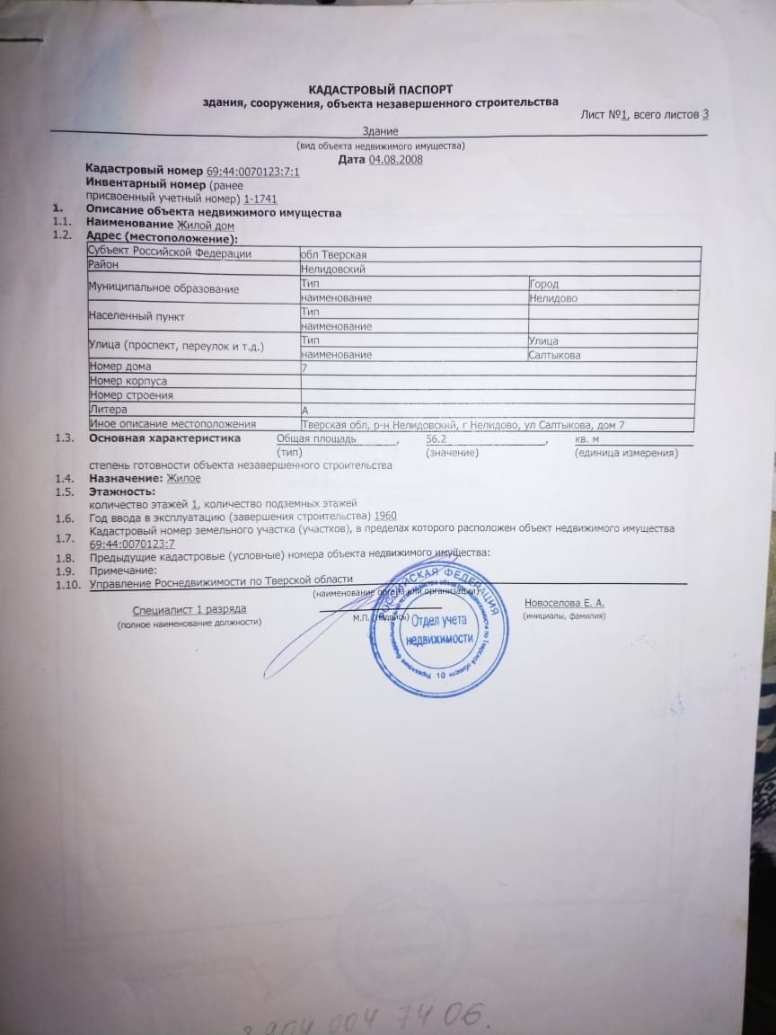 1-этажный дом, 56.7 м2, на продажу в Нелидово, улица Салтыкова, 7