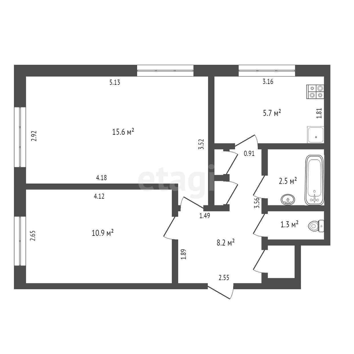 Площадь кухни 5.7 м2