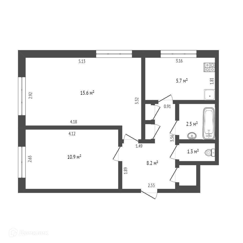 Общая площадь 44.2 м2