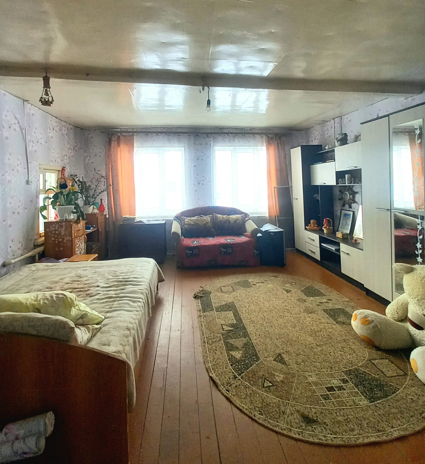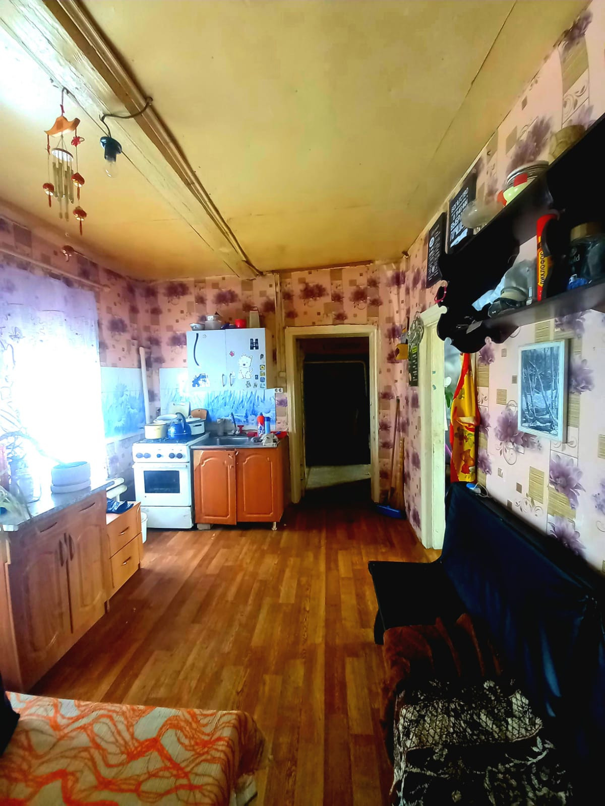 Все коммуникации газ, вода, электричество, канализация. Крыша шифер, по фасаду пластиковые окна, удобства в доме. Две комнаты, большая кухня.