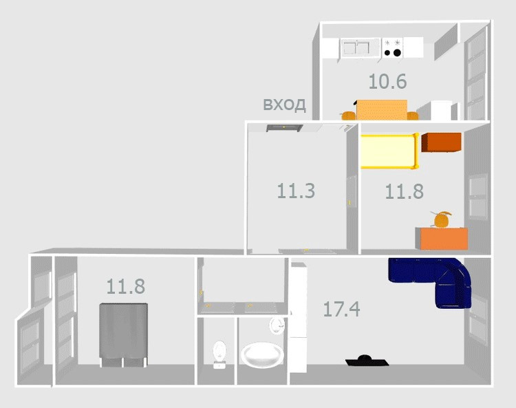 Санузел 1 раздельный
