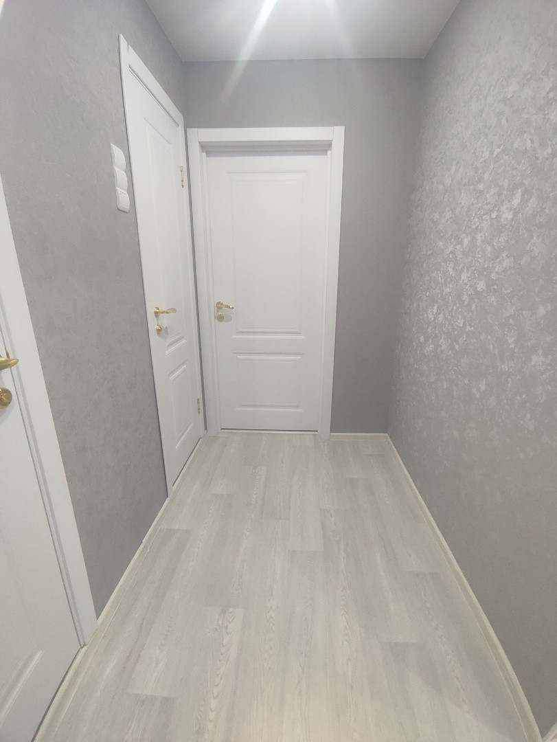 Полы и стены выровнены, поклеены свежие обои натяжные потолки.