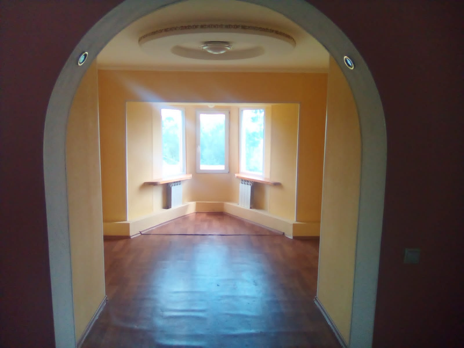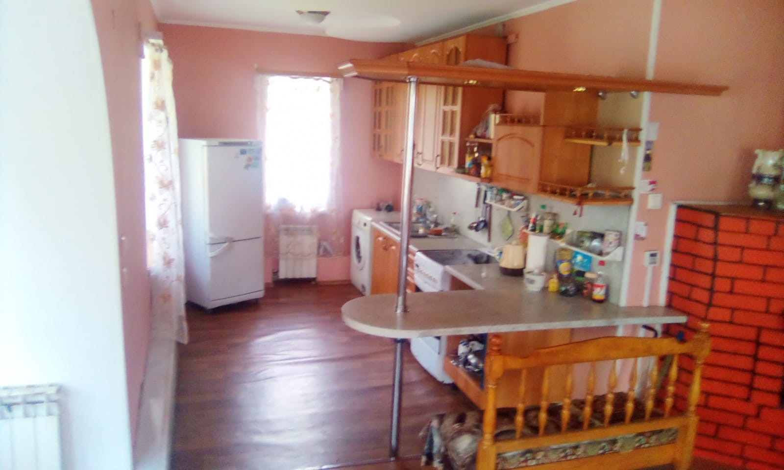 В жилой зоне имеется 3 комнаты, кухонная зона, санузел, просторная гостиная с высоким потолком 3,4 м² и окнами-эркерами - хорошо освещённая в любое время суток! В жилой зоне выполнен капитальный ремонт, произведена замена проводки, окна - ПВХ, напольное покрытие - линолеум, имеется подогрев пола по всему периметру.