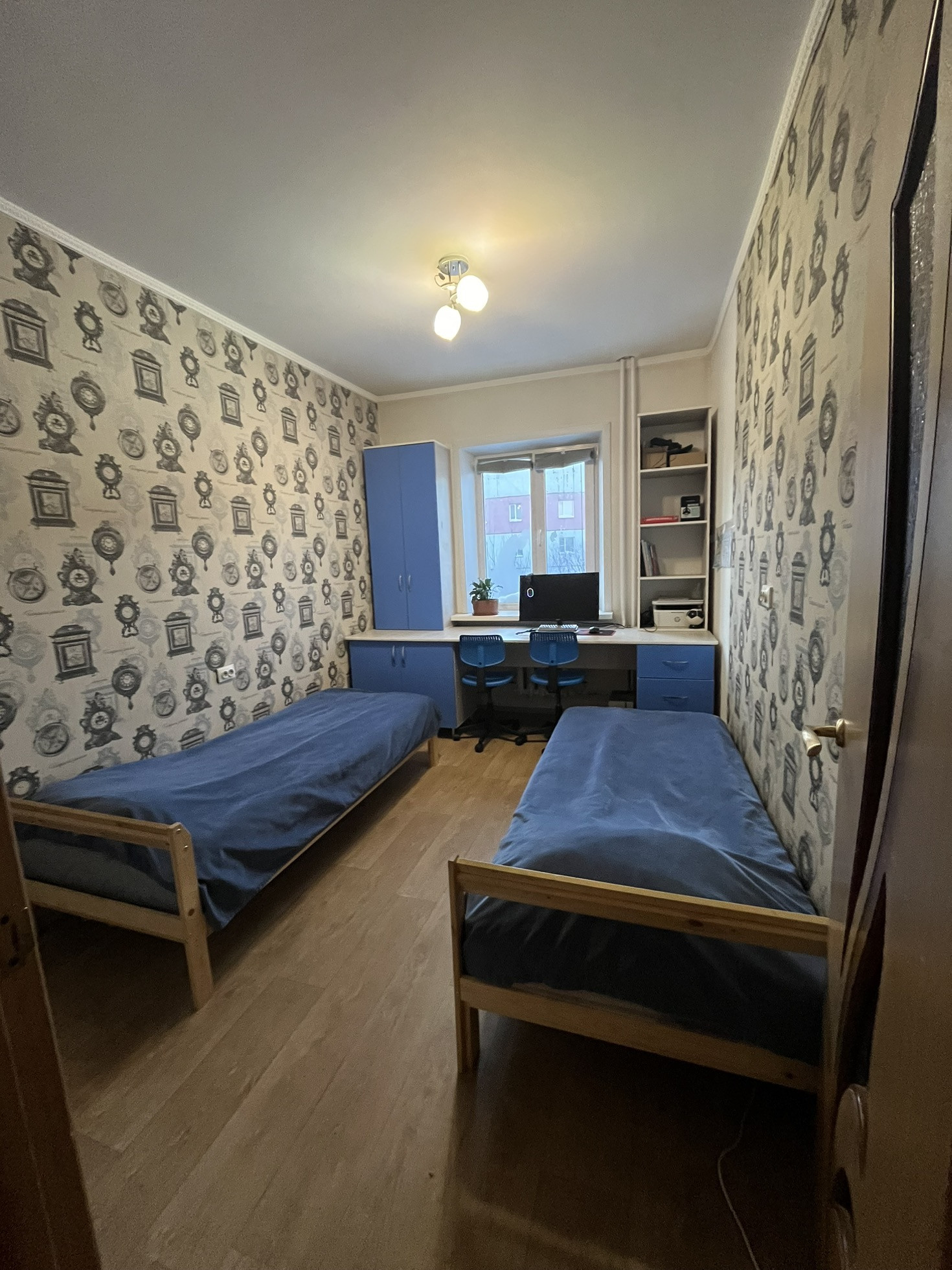 Рядом находится детский сад, школа, магазины, парк, кинотеатр, взрослая поликлиника, аптека. В квартире частично остается мебель и бытовая техника.