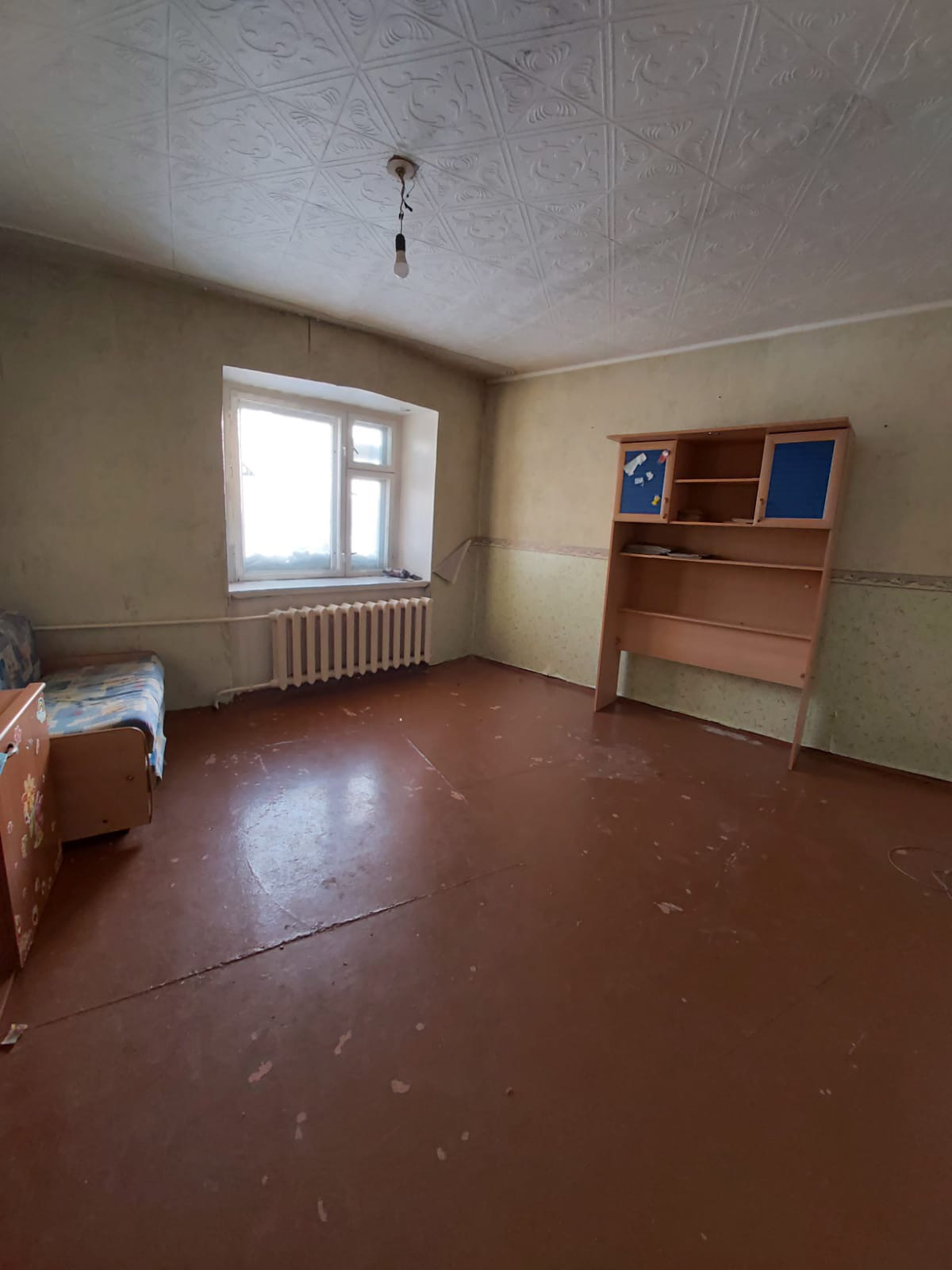 Просторная квартира с большим залом, комнатой и коридором, просторная кухня, что немаловажно для хозяюшек, есть также большая кладовая(тещина комната). Можете сделать ремонт под свой вкус. Соседи тихие и дружелюбные. В шаговой доступности школа, детский сад, магазины, аптеки. Так же рядом  2 остановки. За домом находится парк, где можно гулять с детьми.