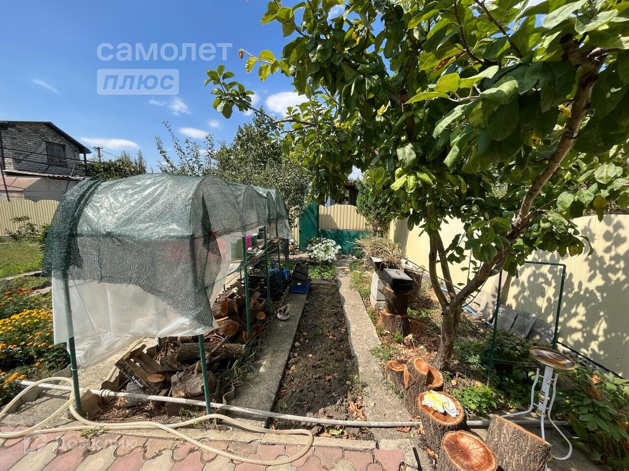 На территории участка есть множество плодовых деревьев, а также постройка для хранения инструментов и колодец, который по-прежнему функционирует. Есть также место, где можно установить бассейн и беседку.
