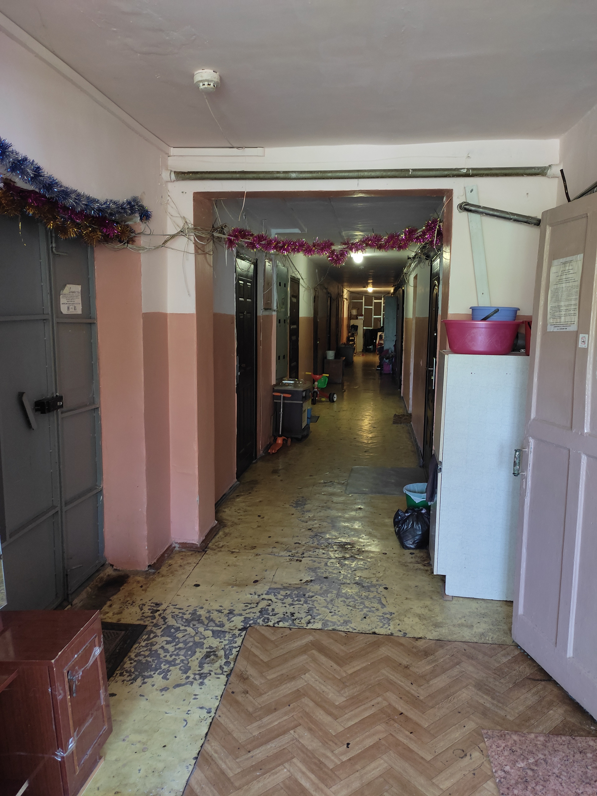 Общежитие находится в зоне отдыха 17,4 кв.м на 2 этаже. Евро окно хорошая дверь, счетчик на электроэнергию в комнате. Соседи все семейные и спокойные. Дверь на этаже кодовая( никто посторонний к нам не приходит)Имеется кладовая на двух хозяинов. Окна выходят на дорогу. На этаже чисто, соседи дежурят.