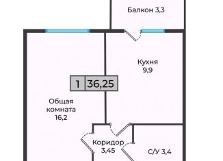 Продам 1-ком. квартиру, 36.3 м2, улица Кочубея, 199