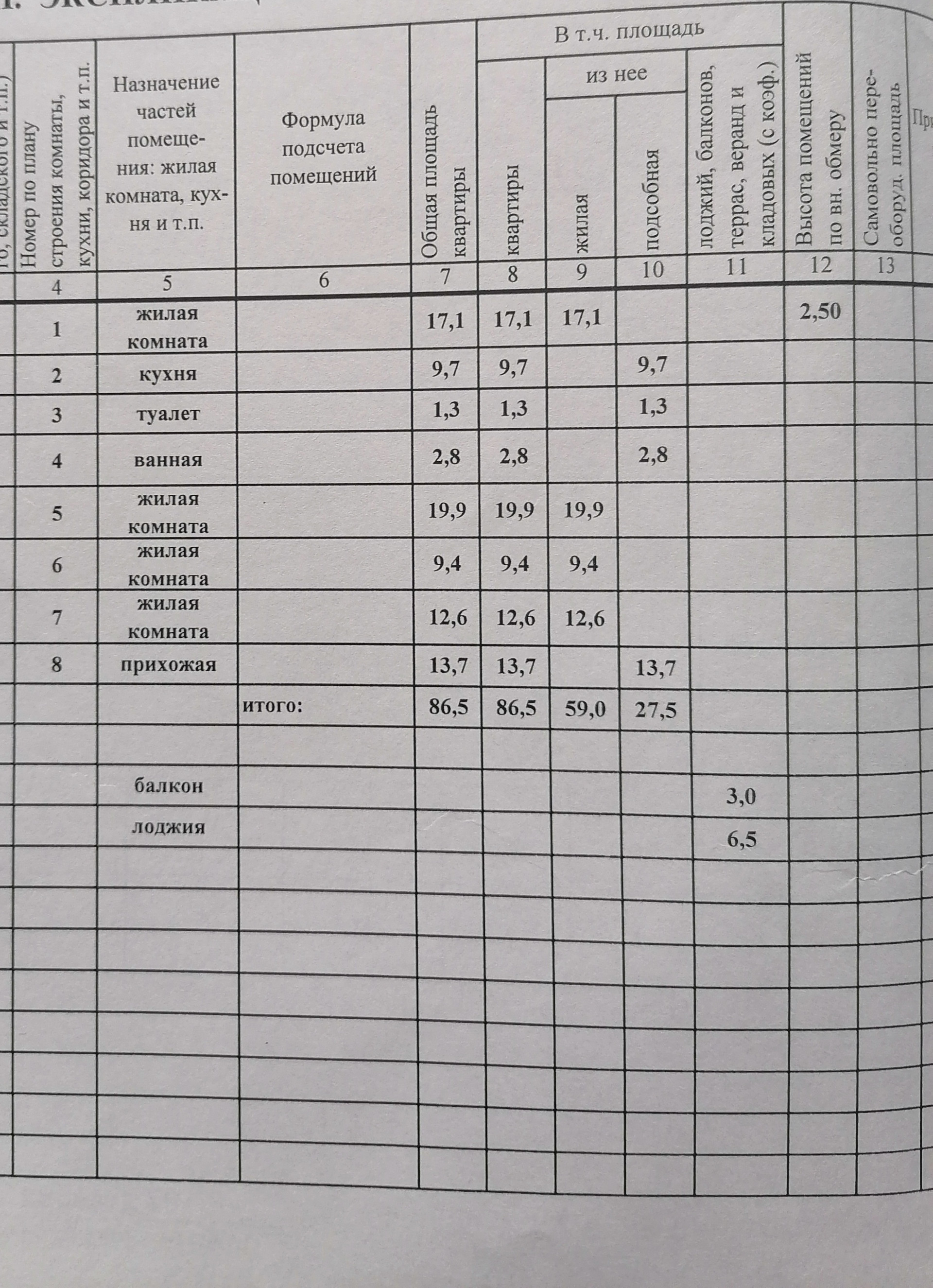 Общая площадь 86.5 м2