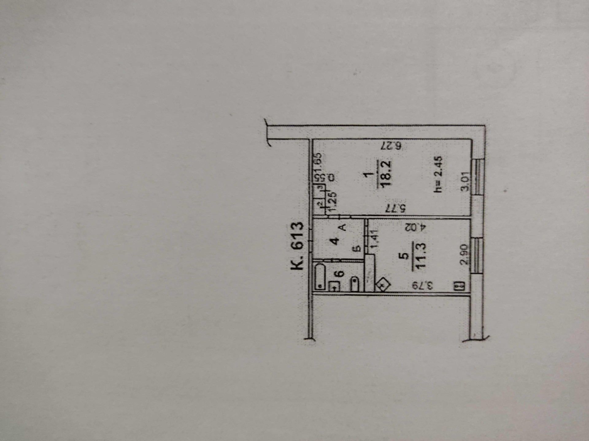 Общая площадь 36.5 м2