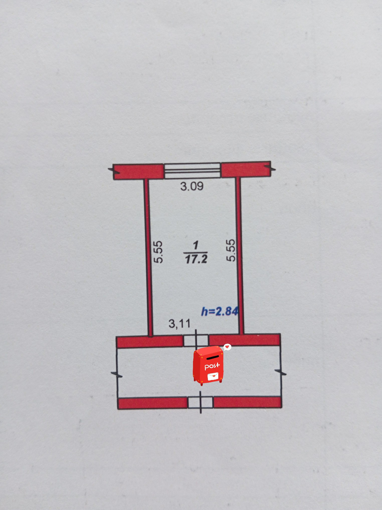 Общая площадь 17.2 м2