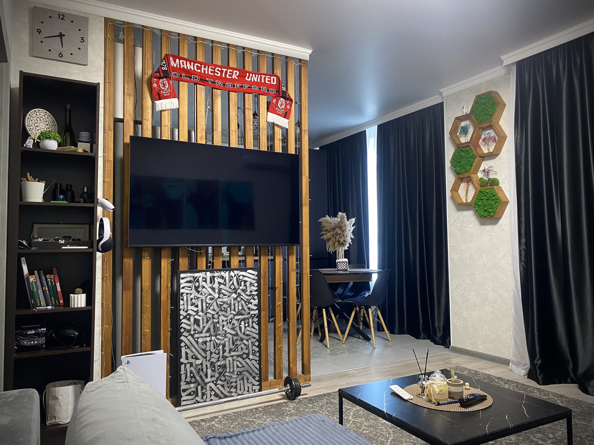 -В гостиной угловой диван раскладной с атаманкой для складирования вещей, рабочий уголок