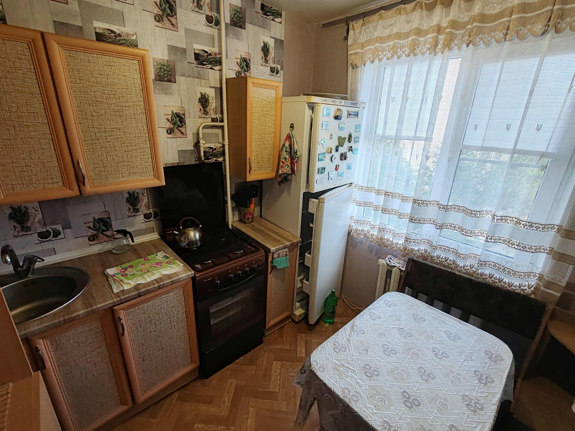 Хорошая большая кухня, просторные раздельные комнаты, раздельный санузел.узел, есть лоджия.
