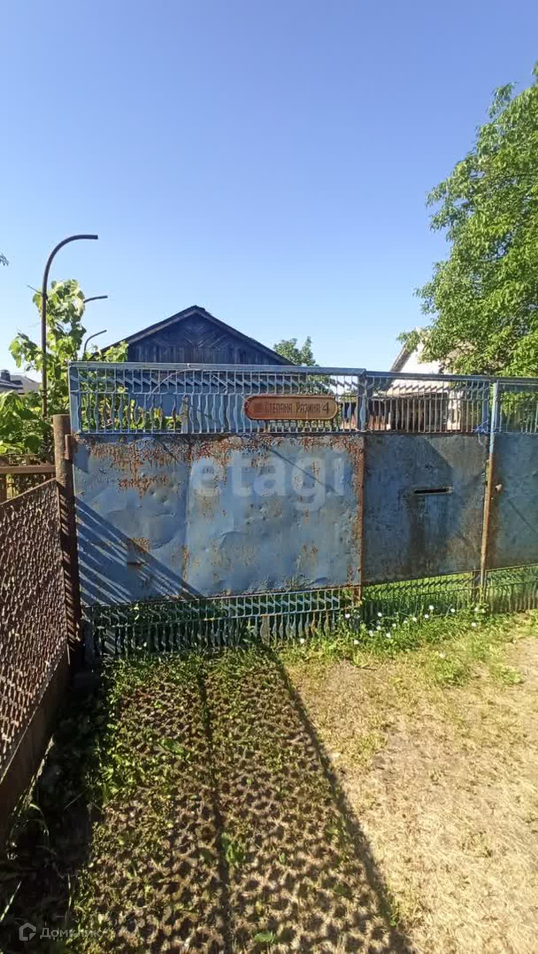Ширина фасада - 5 м. Участок неправильной формы. Часть территории огорожена металлическим забором. На территории участка расположен дом и гараж под снос. Газ, электричество, вода заведены.