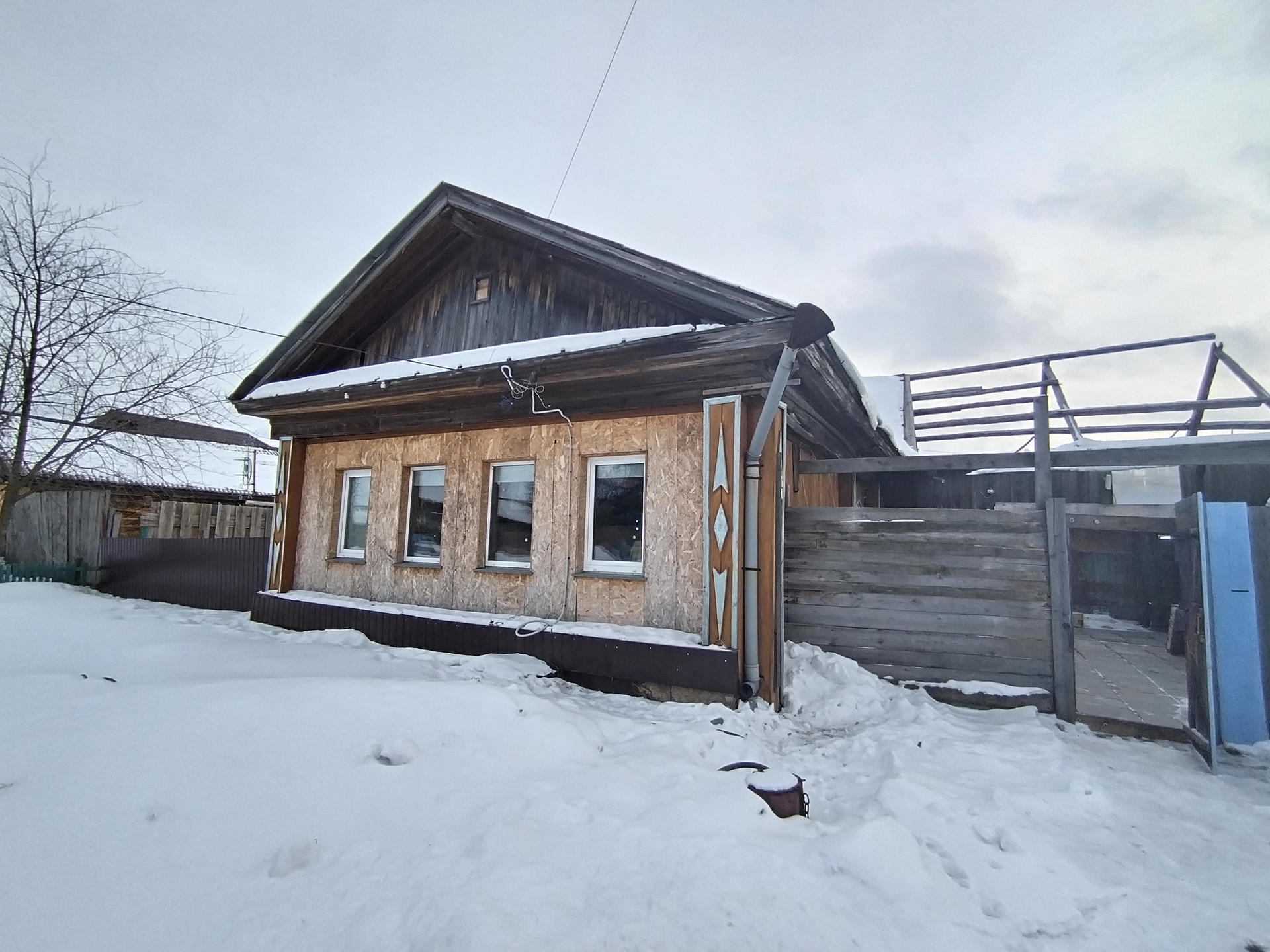 Дом бревенчатый, пластиковые окна, центральный водопровод, выгребная канализация, водонагреватель. В доме электрическое отопление, заменена вся проводка, начат ремонт. Газ у соседей. Участок ровный, отмежеван. Имеется баня, стая.