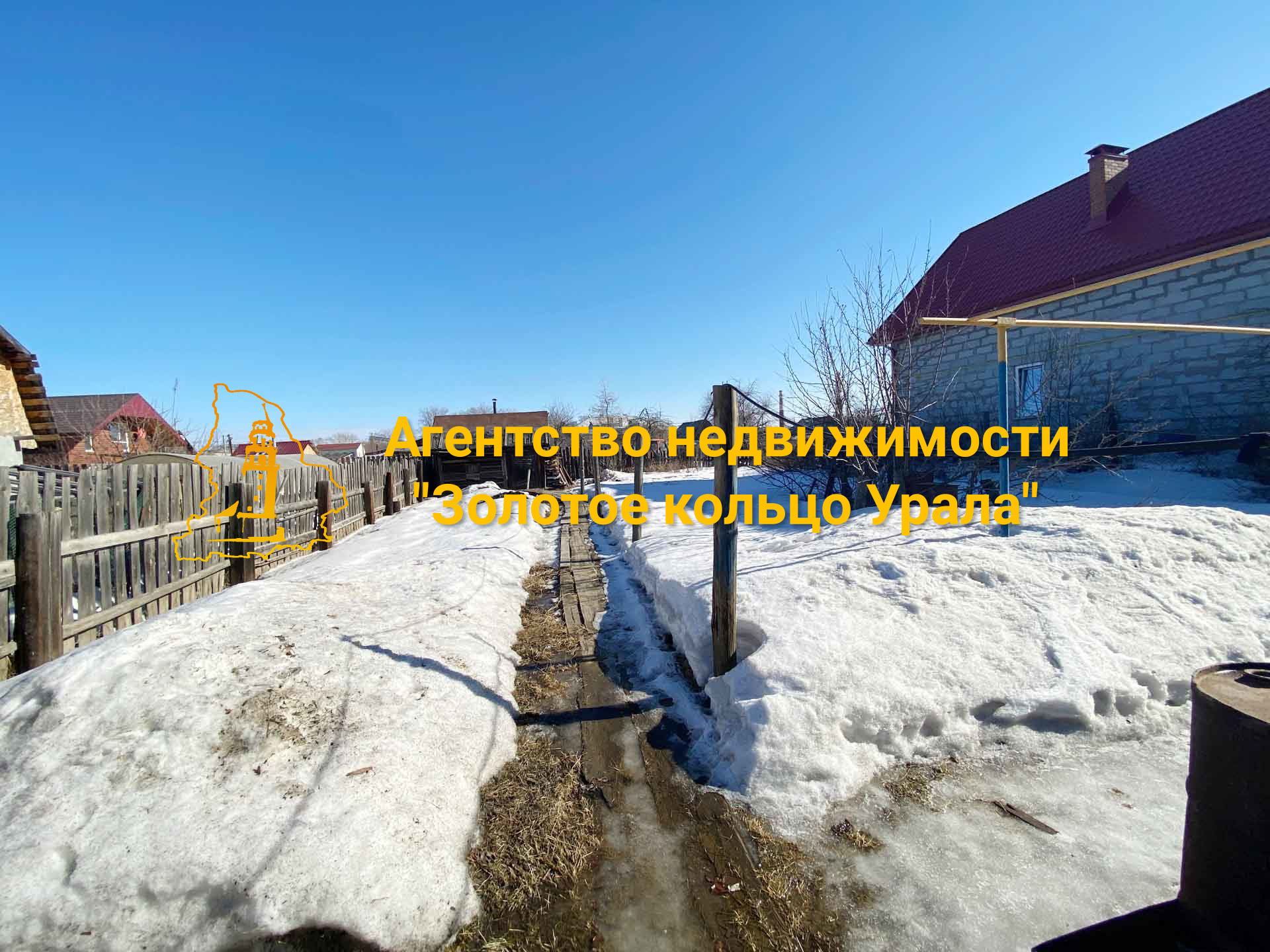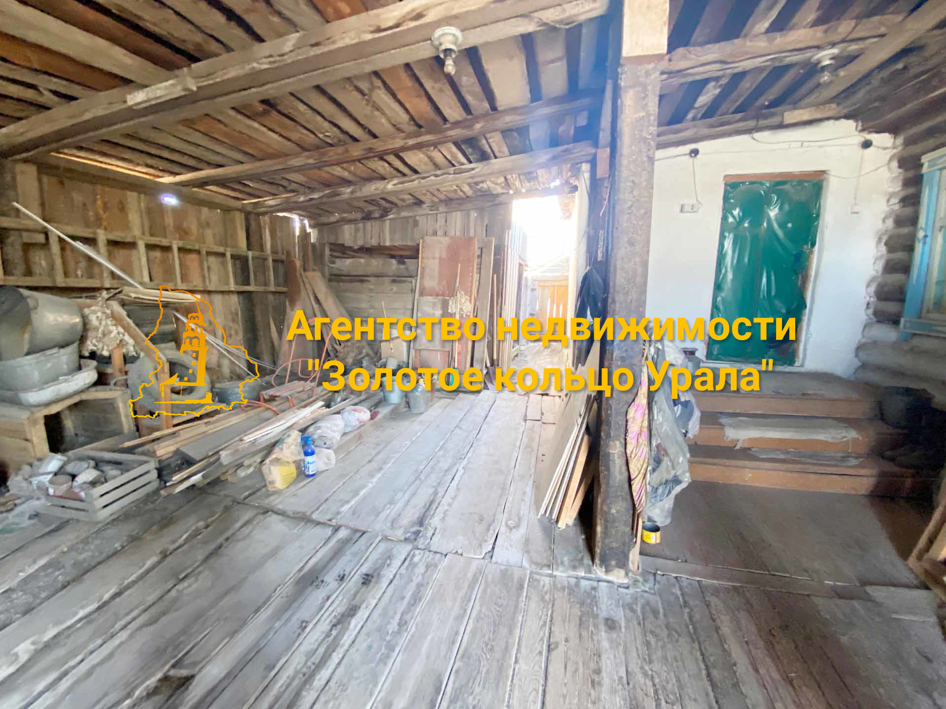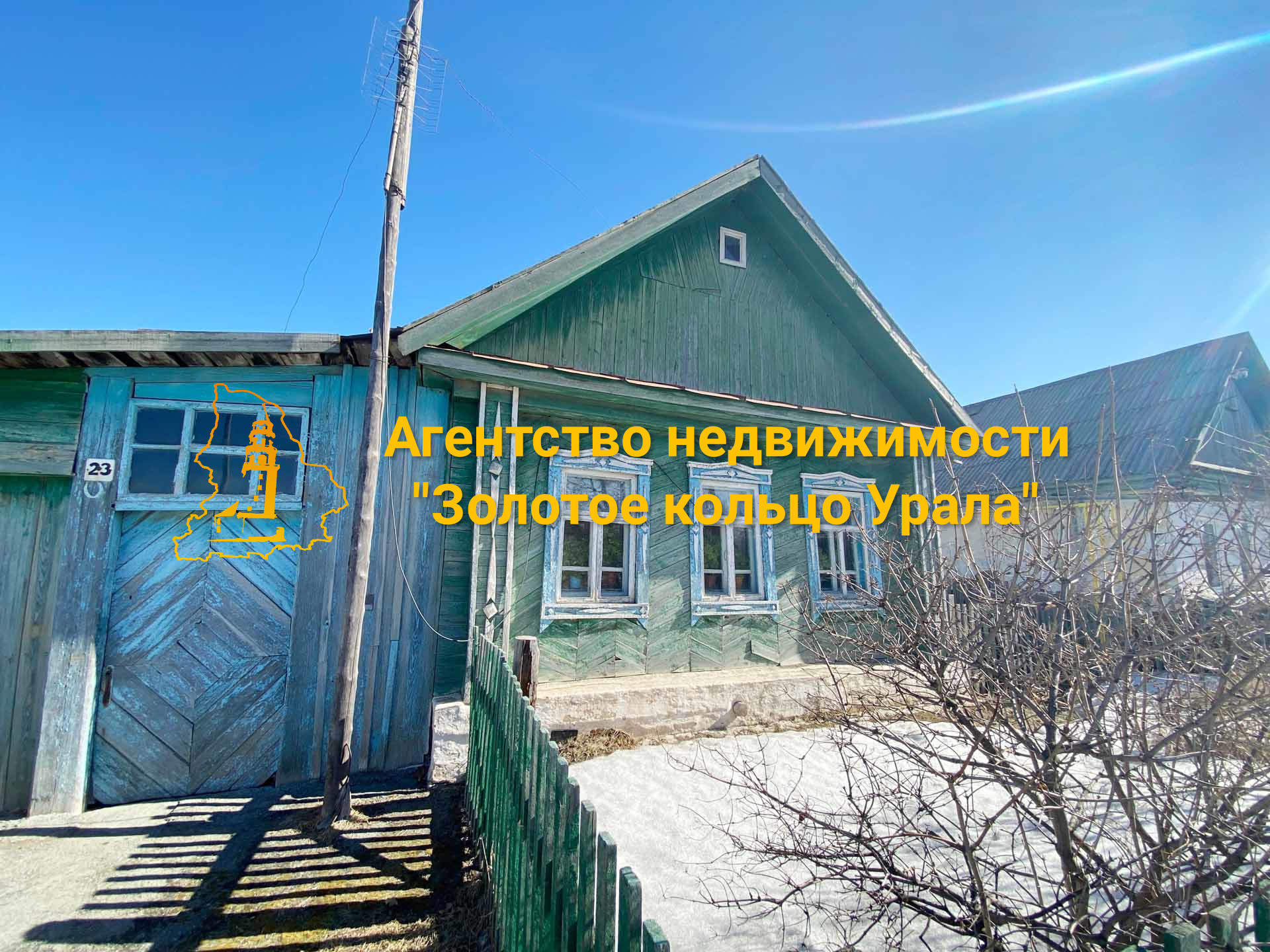 Дом выполнен из бревна, крыша – шифер.