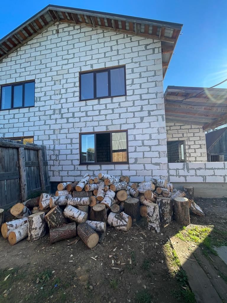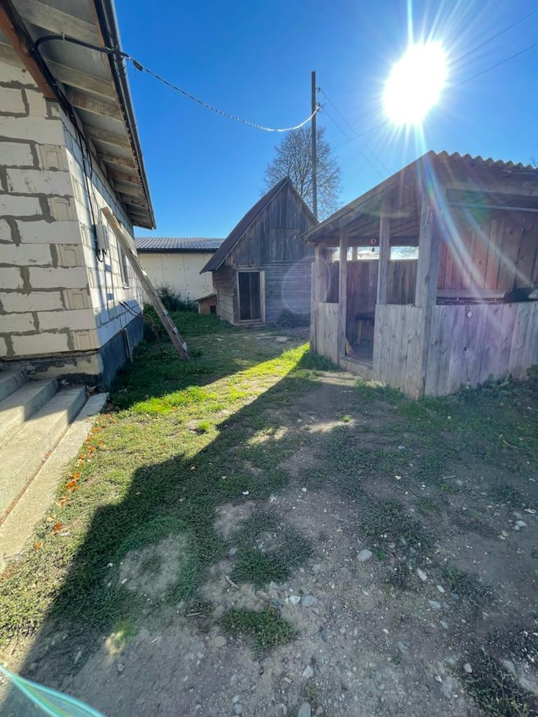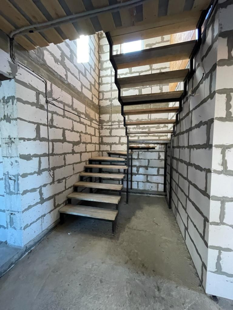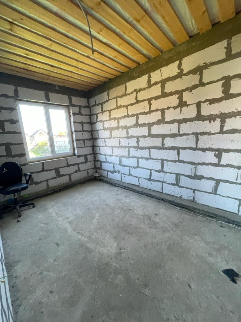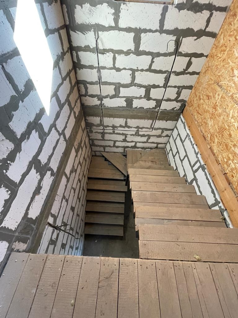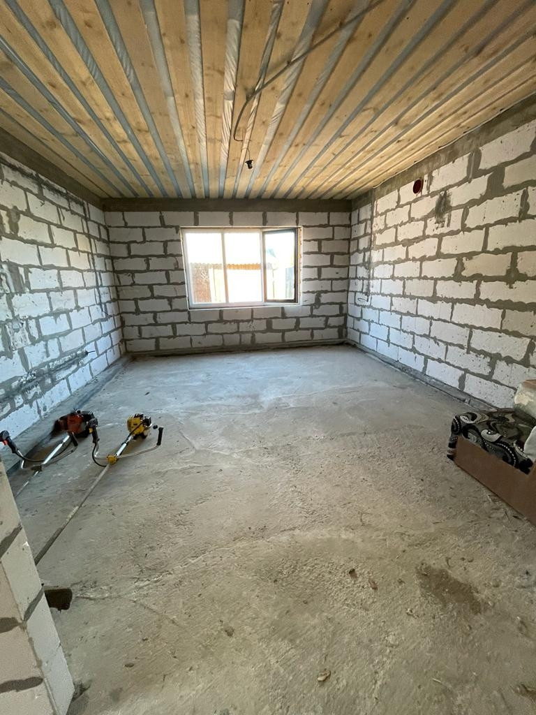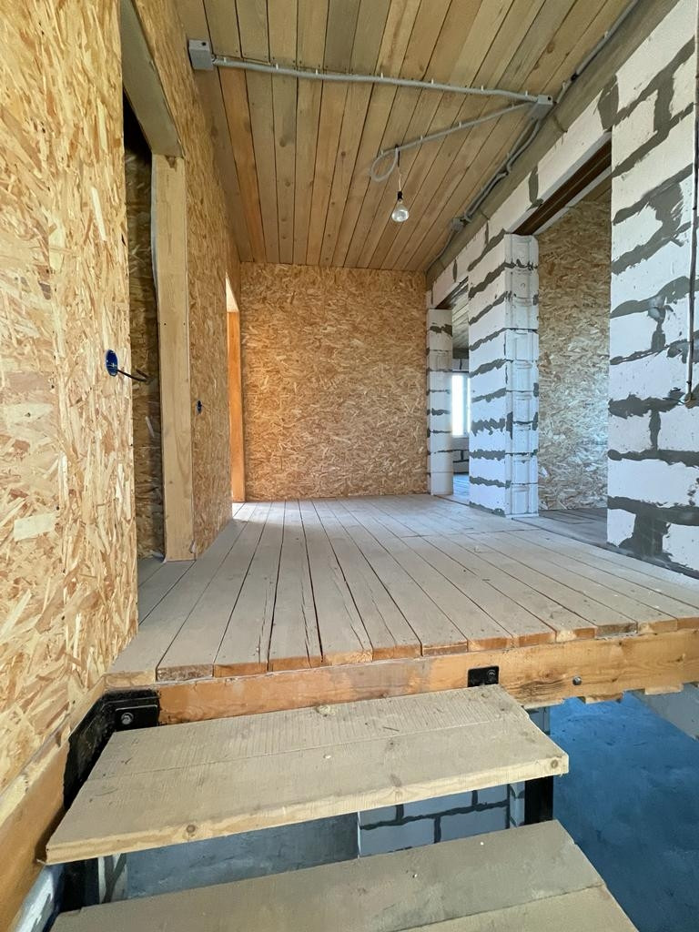 2) Новый просторный дом из газоблока. Дом строился для себя из качественных строительных материалов. На первом этаже расположены котельная, кухня 25 кв.м., просторная гостиная, комната для гостей, санузел. На втором этаже три большие комнаты и санузел. Имеется проект на газ, в доме электричество, сделан выход для автономной канализации и подведения водоснабжения. В доме установлены ламинированные пластиковые окна, крыша и межэтажное перекрытие утеплены, выполнены все черновые работы, все подготовлено под чистовую отделку. В доме установлена капитальная лестница на второй этаж.