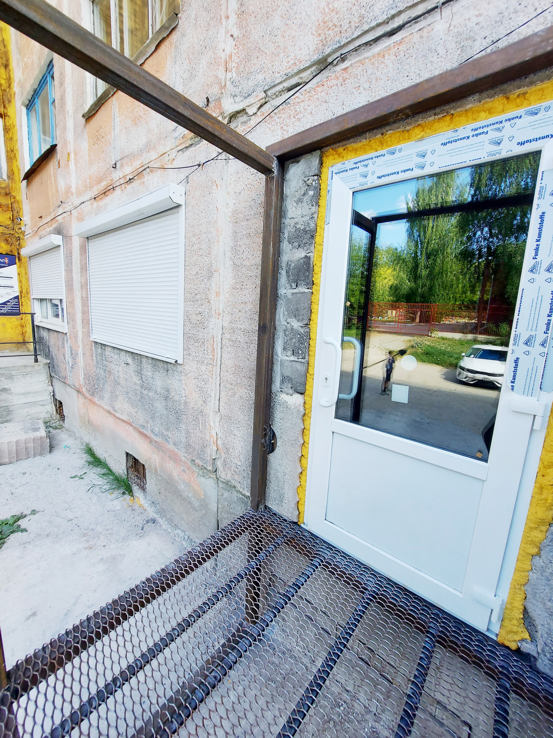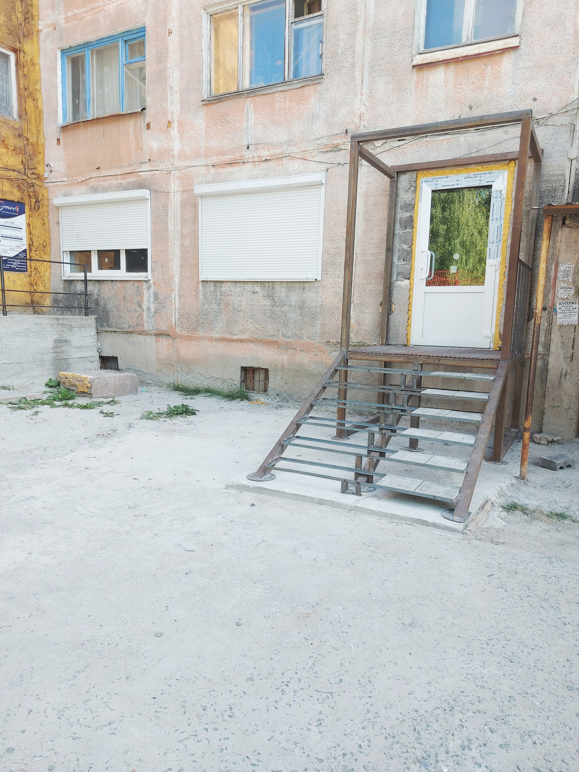 Входная группа оборудована лестницей и подъемным лифтом