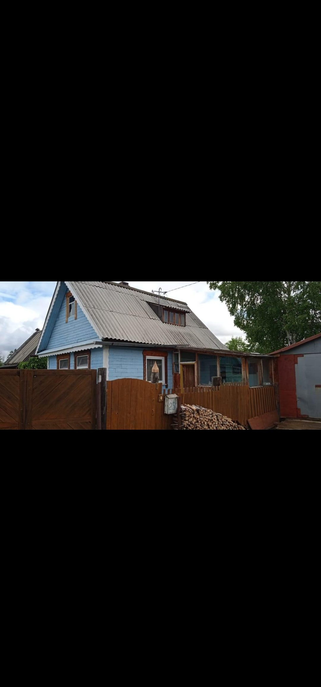 Участок 7 соток (в черте города), на нем дом для круглогодичного проживания 43 кв.м. (жилая комната 22кв.м.), две веранды под крышей, дровянник, баня, летний дом (22кв.м.).На участке располагается теплица, огуречник, разные виды плодовоягодных кустарников и деревьев, перед участком гараж. Есть летний водопровод.
