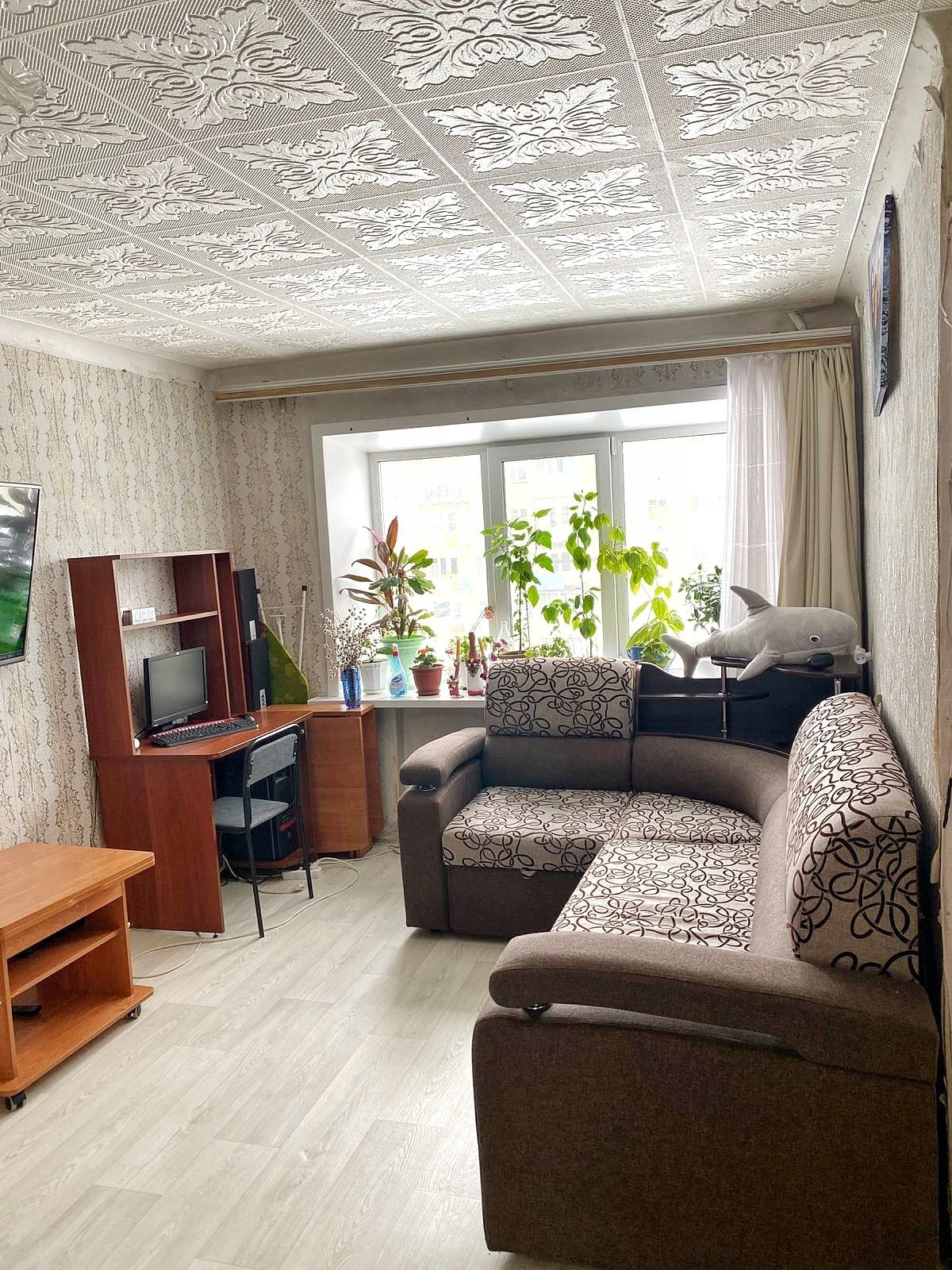 Без балкона. В квартире установлены пластиковые окна, в одной комнате натяжной потолок. Выполнен косметический ремонт. Квартира в хорошем состоянии. Расположена в центре города. Рядом расположены детские сады "Кораблик" и "Мишутка", школа 2, торговые центры, ресторан, автобусная остановка. Развитая инфраструктура и транспортная доступность.