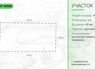Объект № 68586 Продается земельный участок на территории Николаевского поселкового совета (Симферополь). Площадь: 11,45 гектар. Назначение земельного участка: сельскохозяйственное использование (СНТ, ДНТ). Участок ровный, земля плодородная, сейчас на участке сливовый сад. Коммуникации: на участке закрытая скважина. Локация: земля находится в граница... |