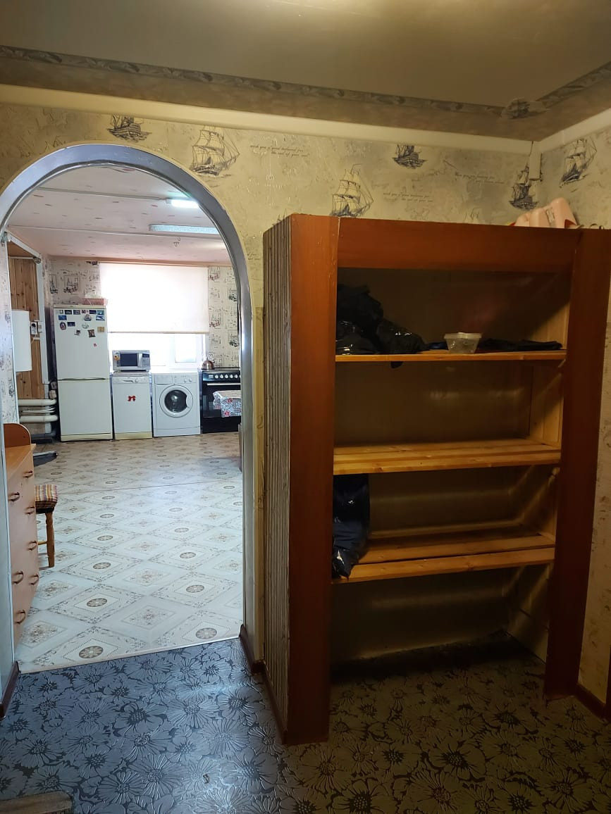 Уютная 2-х комнатная квартира. Большая кухня, их которой есть прямой доступ в баню/санузел/душ. Водонагреватель на 80л. Своё отопление (котёл в печи). Центральный водопровод. Септик.