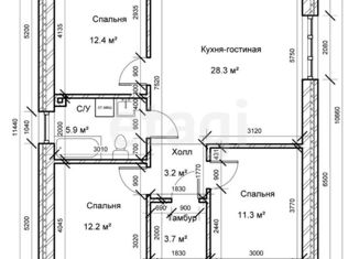 Общая площадь: 60 м2