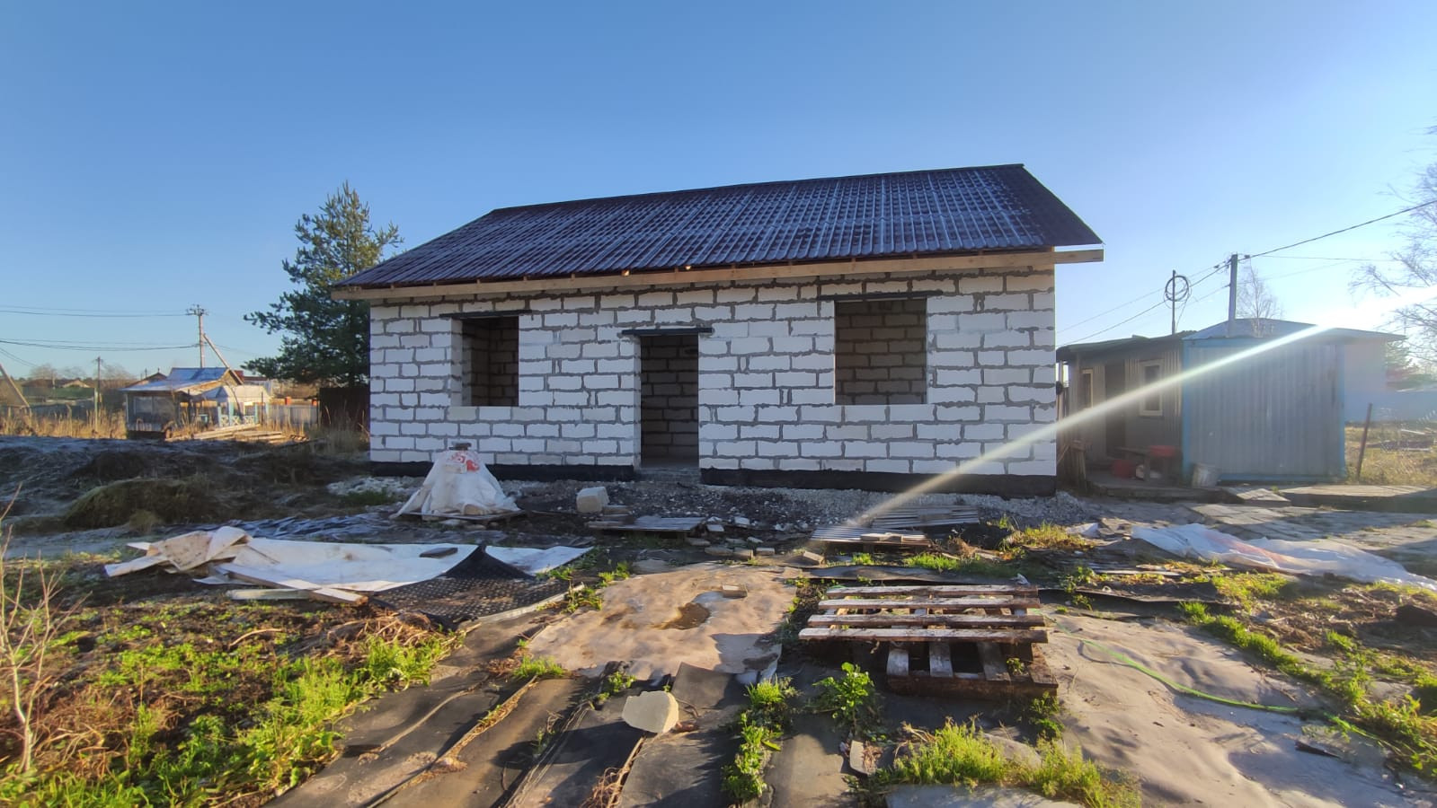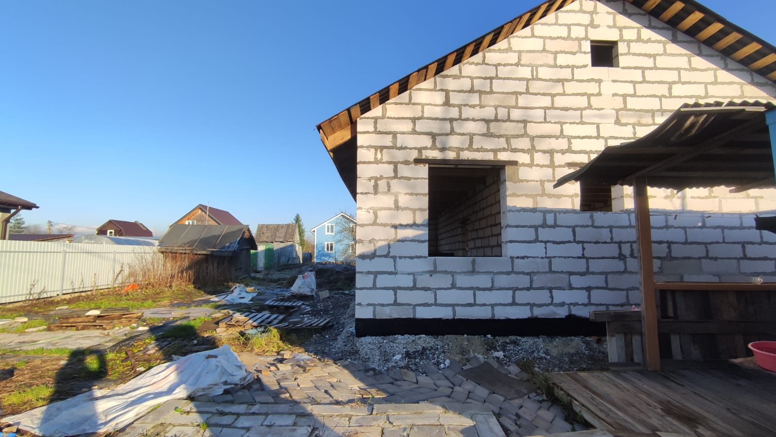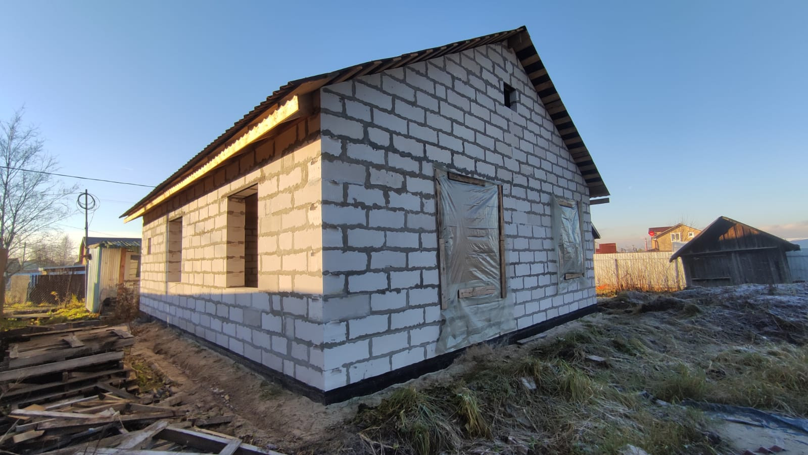 Дом: газобетонный блок D500. Кровля-металлочерепица.
