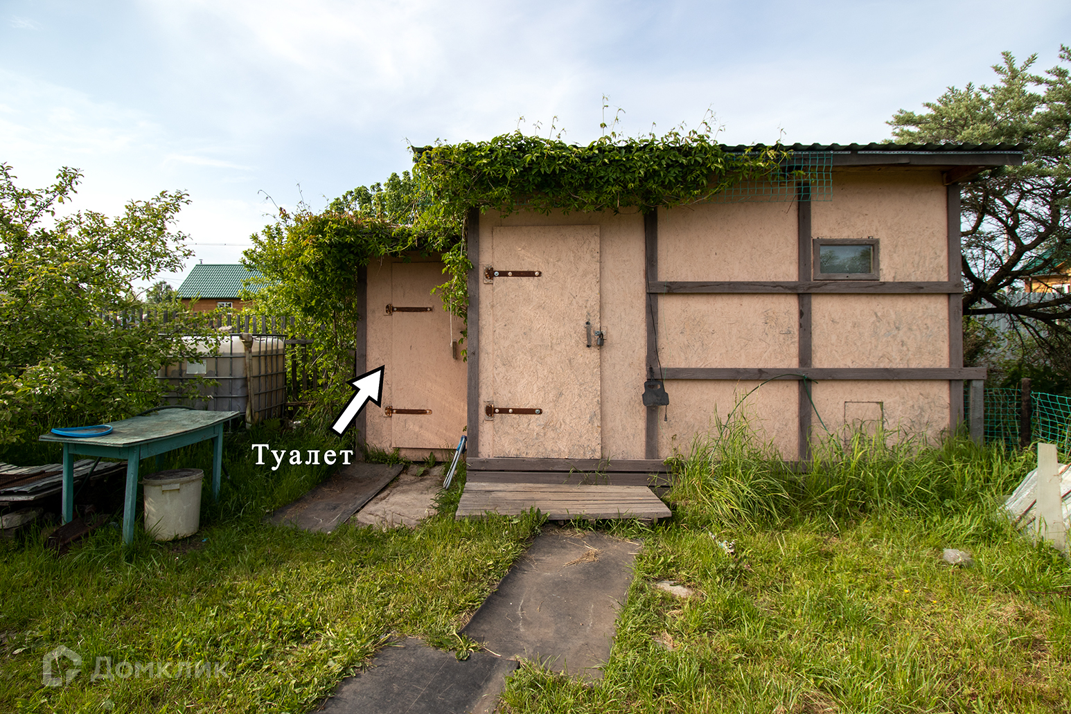 На участке также есть уличный туалет, сарай с  небольшим теплым курятником. Колодец. Зона отдыха.