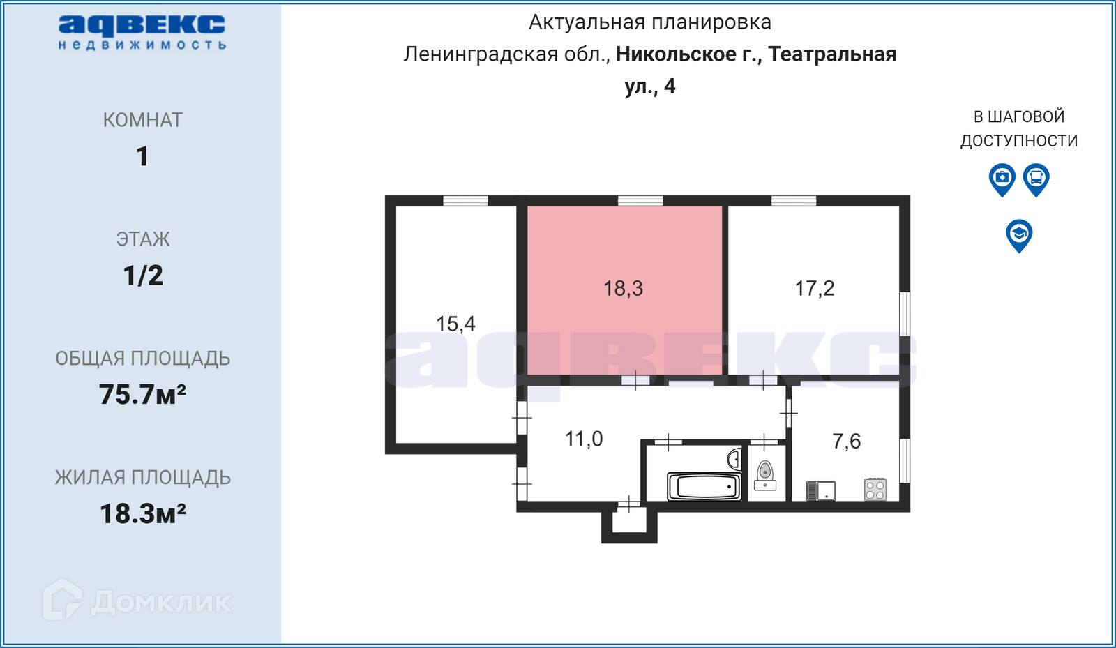 Общая площадь 75.7 м2