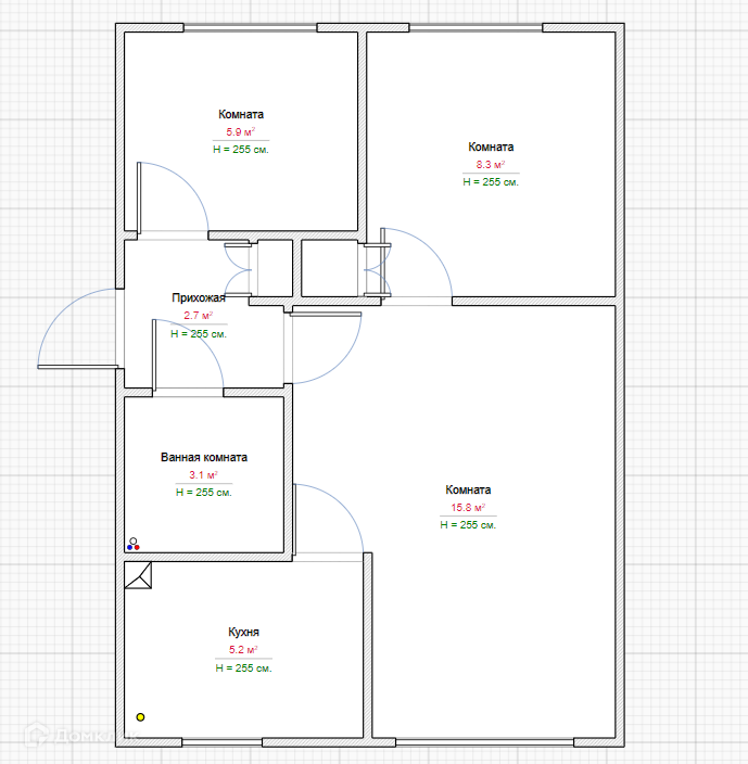 Высота потолков 2.55 м
