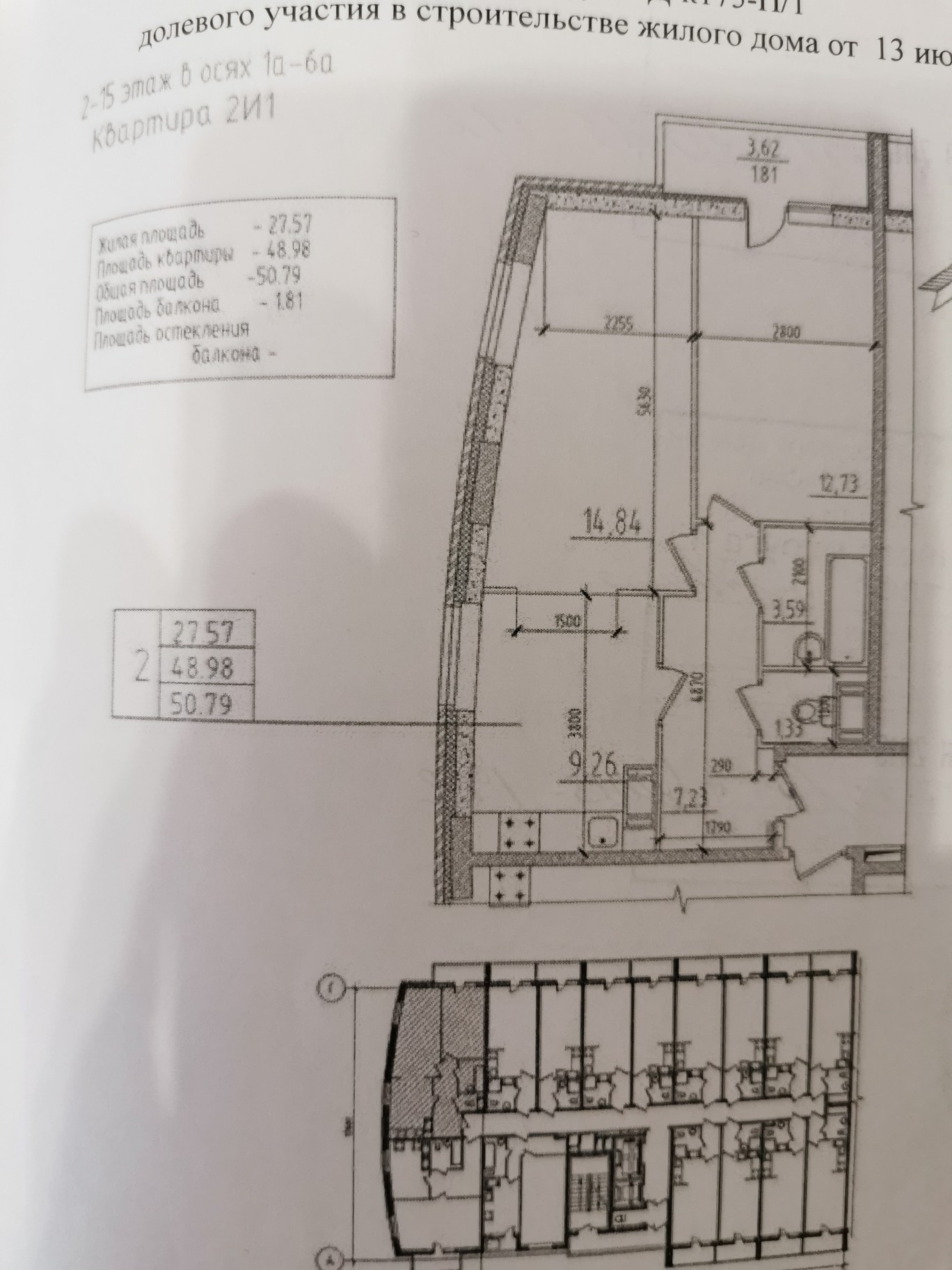 Общая площадь 50.8 м2