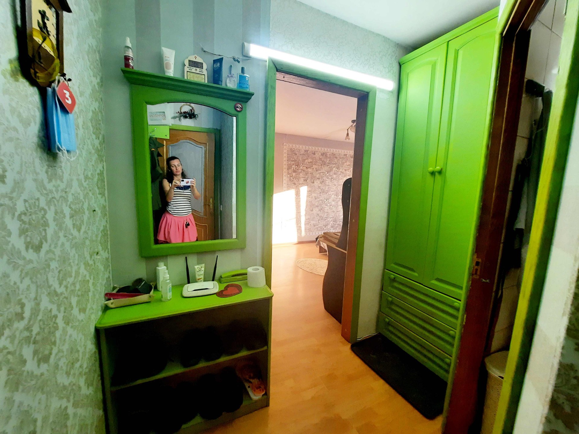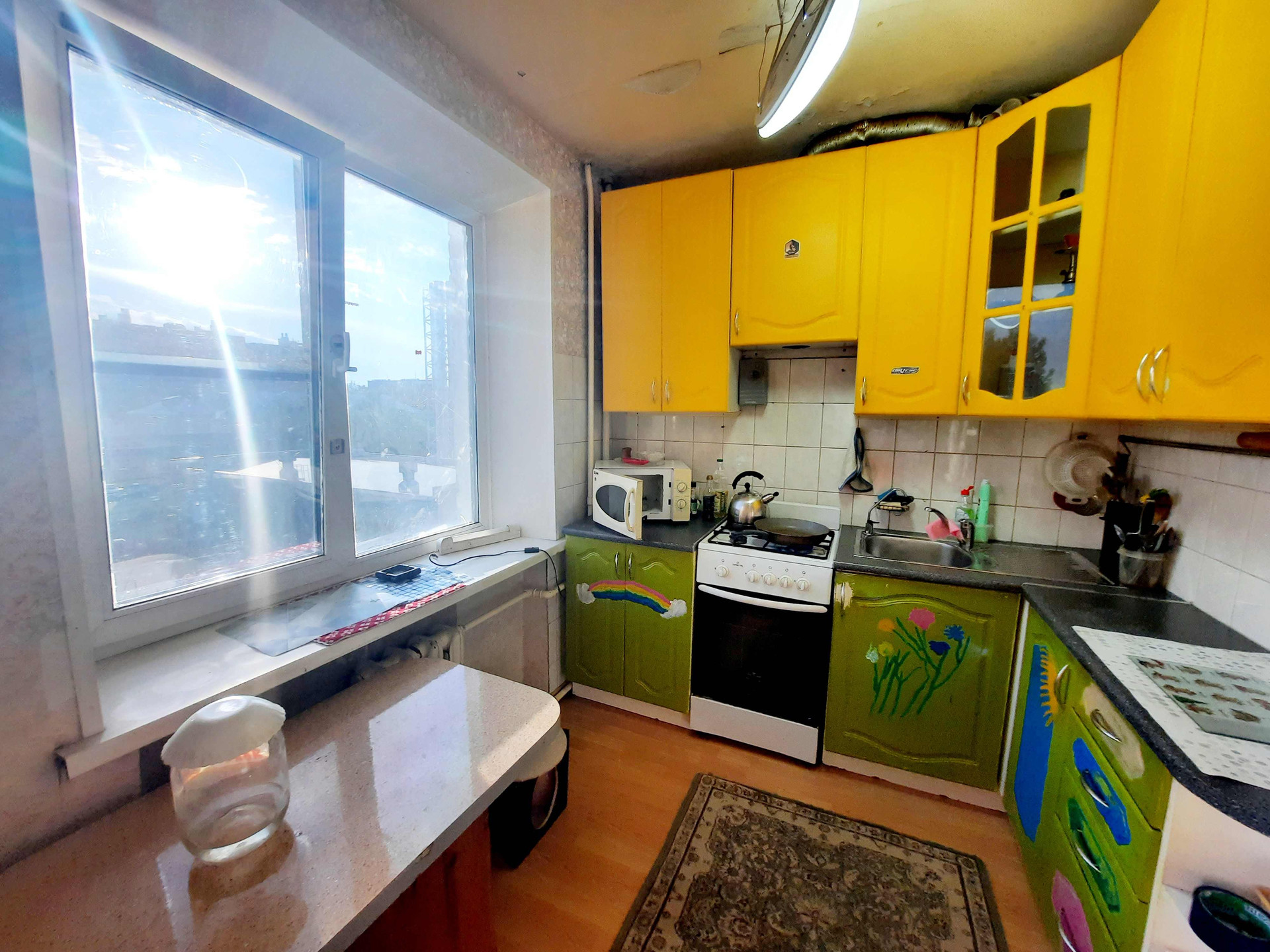 * Пол- ламинат, кухня- плитка