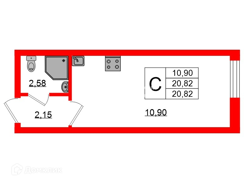 Общая площадь 20.82 м2
