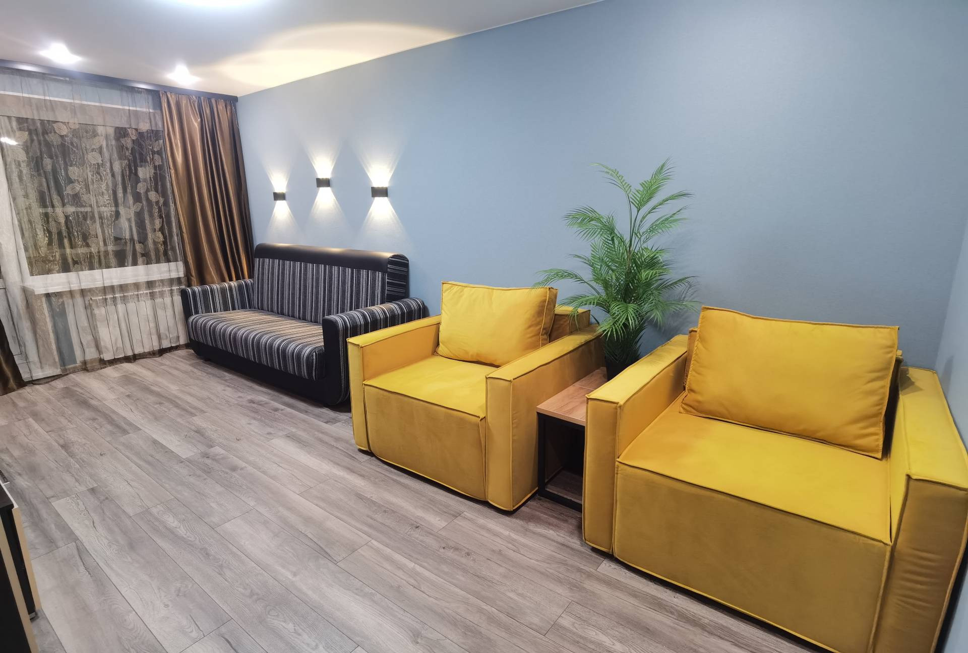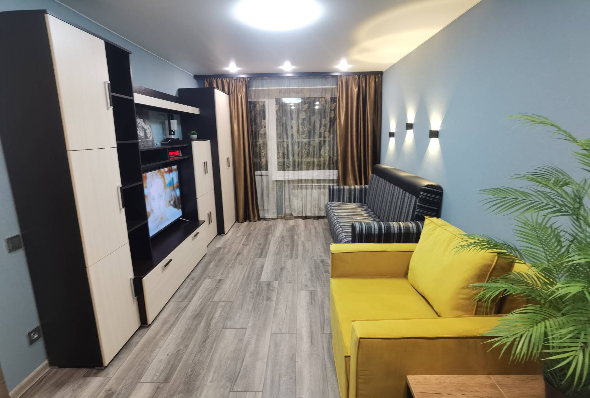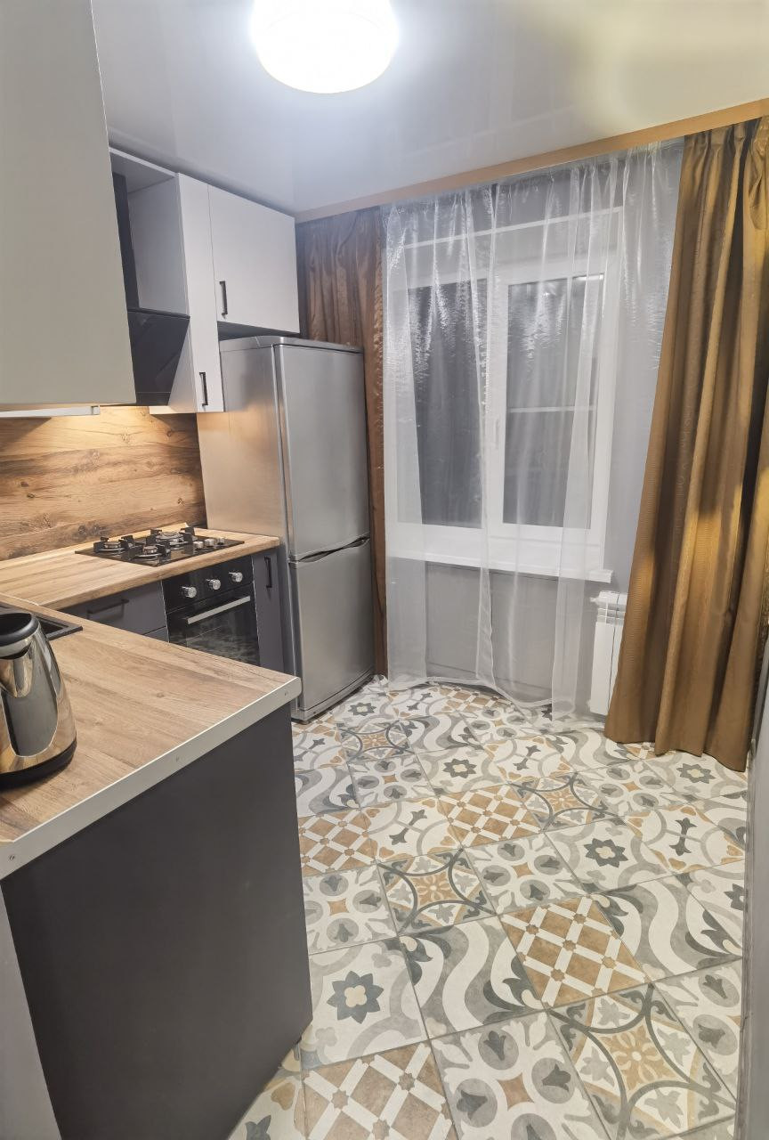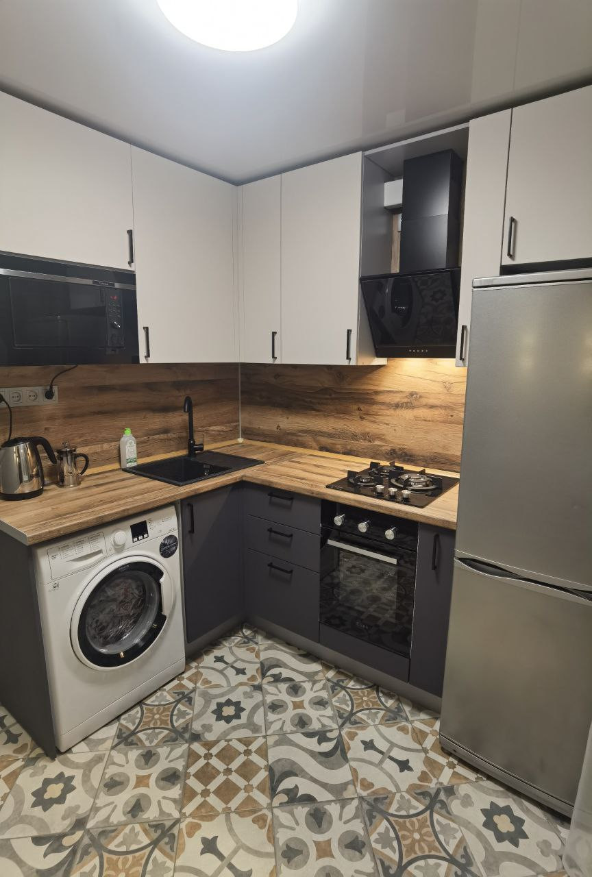 В квартире есть всё для комфортного проживания: новый кухонный гарнитур, кухонный стол и стулья, холодильник, стиральная машина, электрический чайник, плита, духовой шкаф, вытяжка, двуспальный диван, места для хранения вещей.