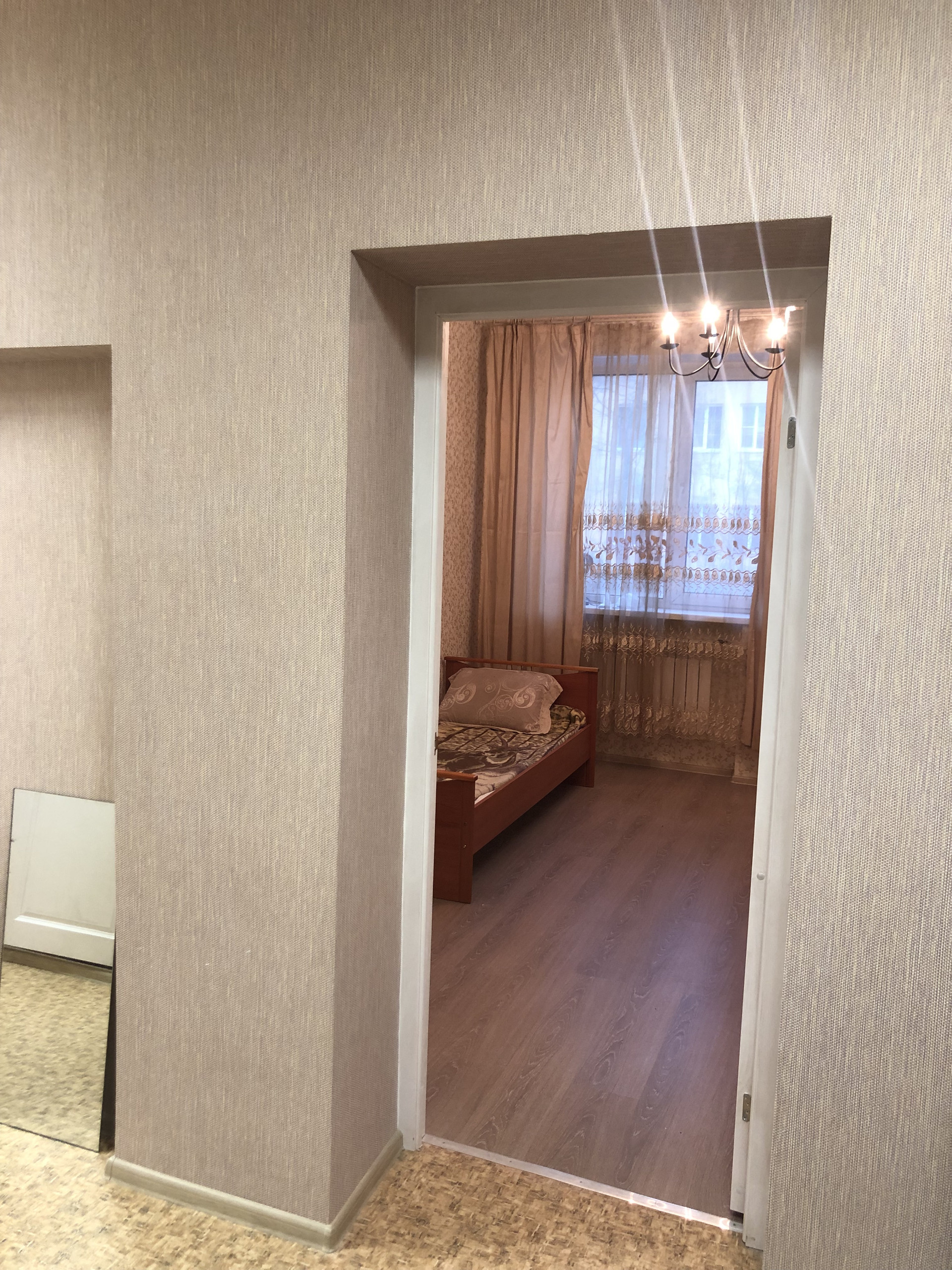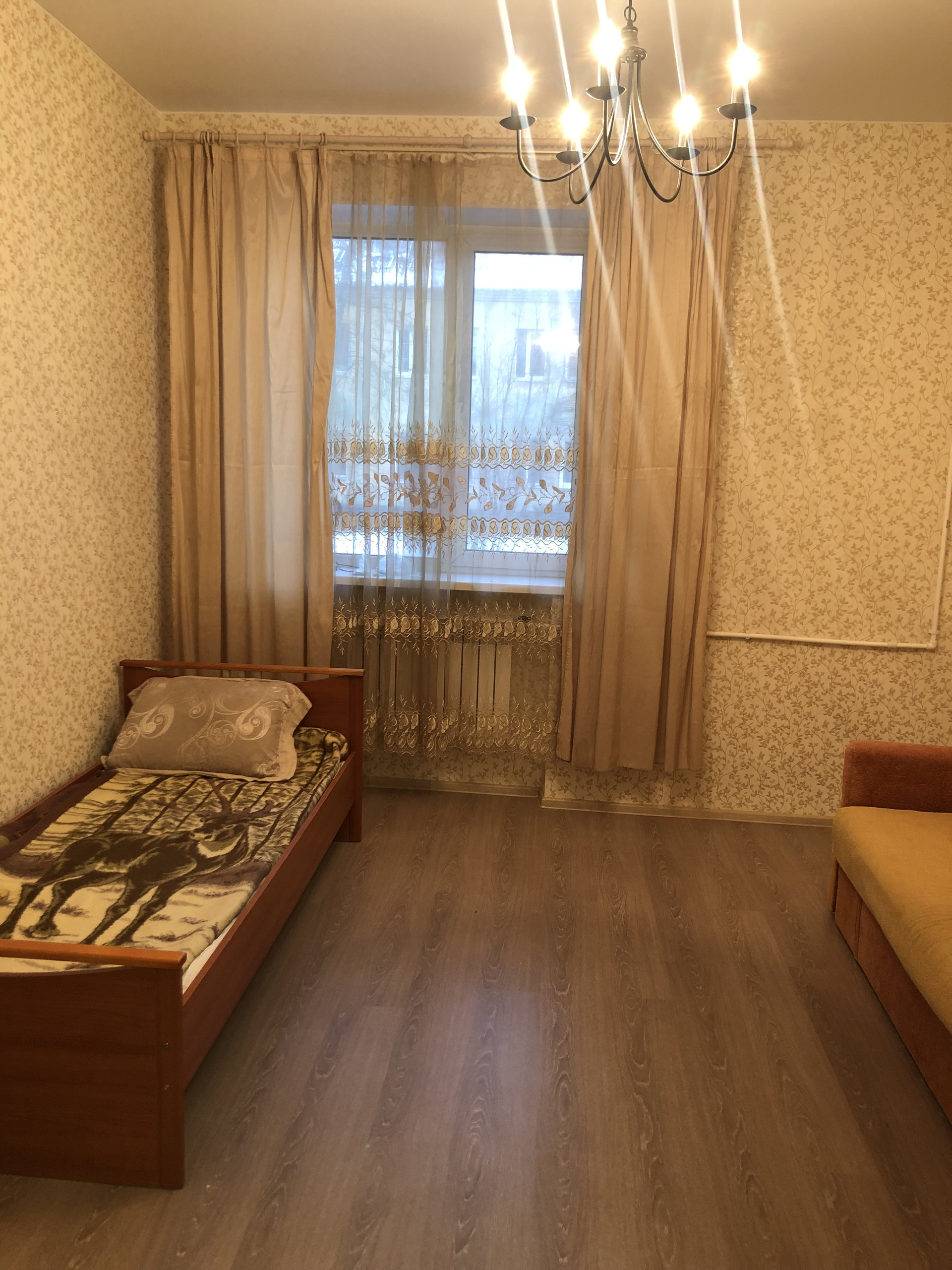 Квартира укомплектована всем необходимым для проживания. В комнатах организованы спальные места, два дивана, односпальная кровать. Имеется холодильник, стиральная машина, шкаф-стенка, кухонный стол.