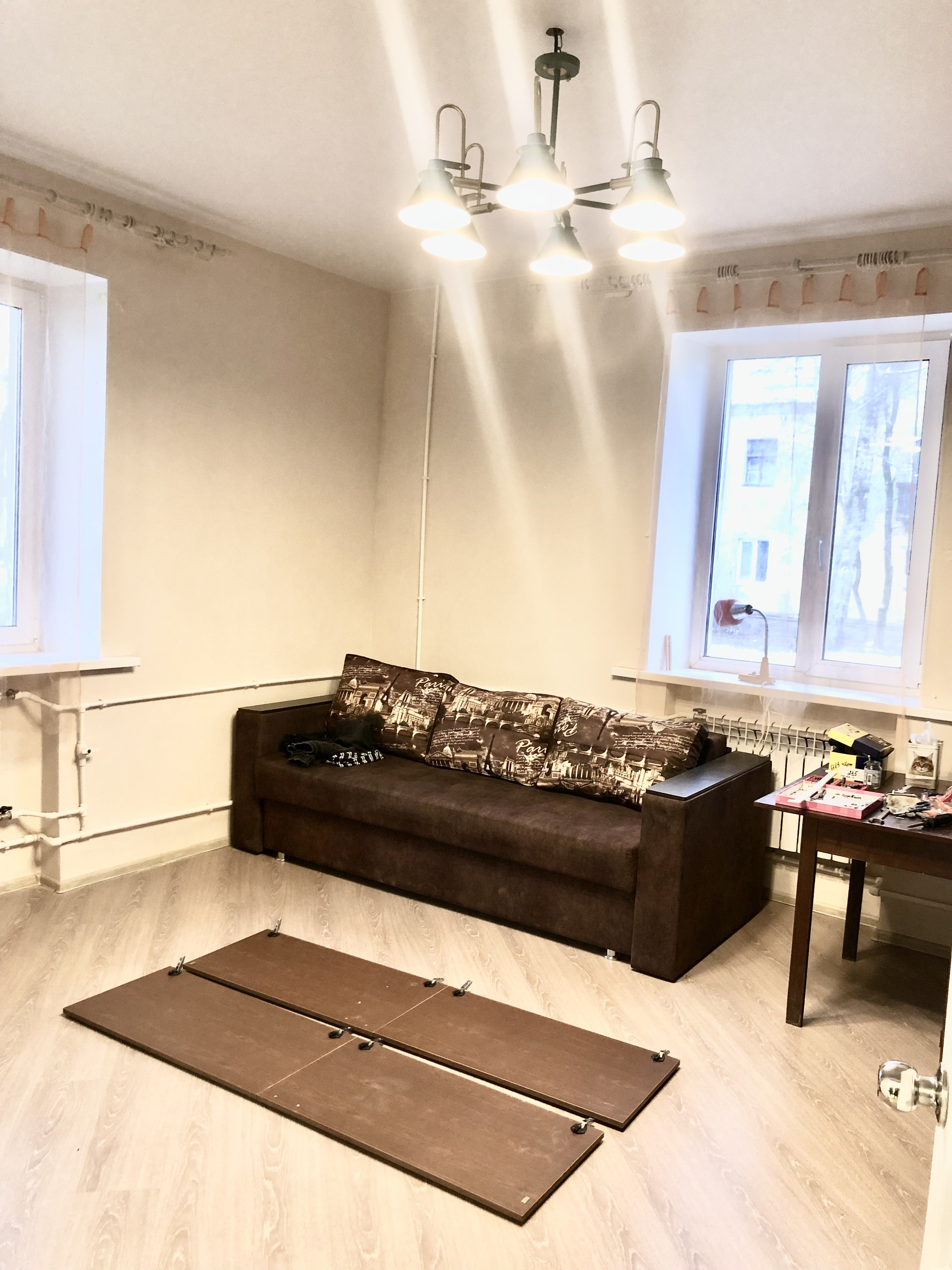 В квартире сделан свежий ремонт, на пол постелен новый ламинат. Санузел совмещенный. В ванной комнате стены и полы выложены кафельной плиткой. Имеется раковина, стиральная машинка и душевая. Вся сантехника поменяна на новую.