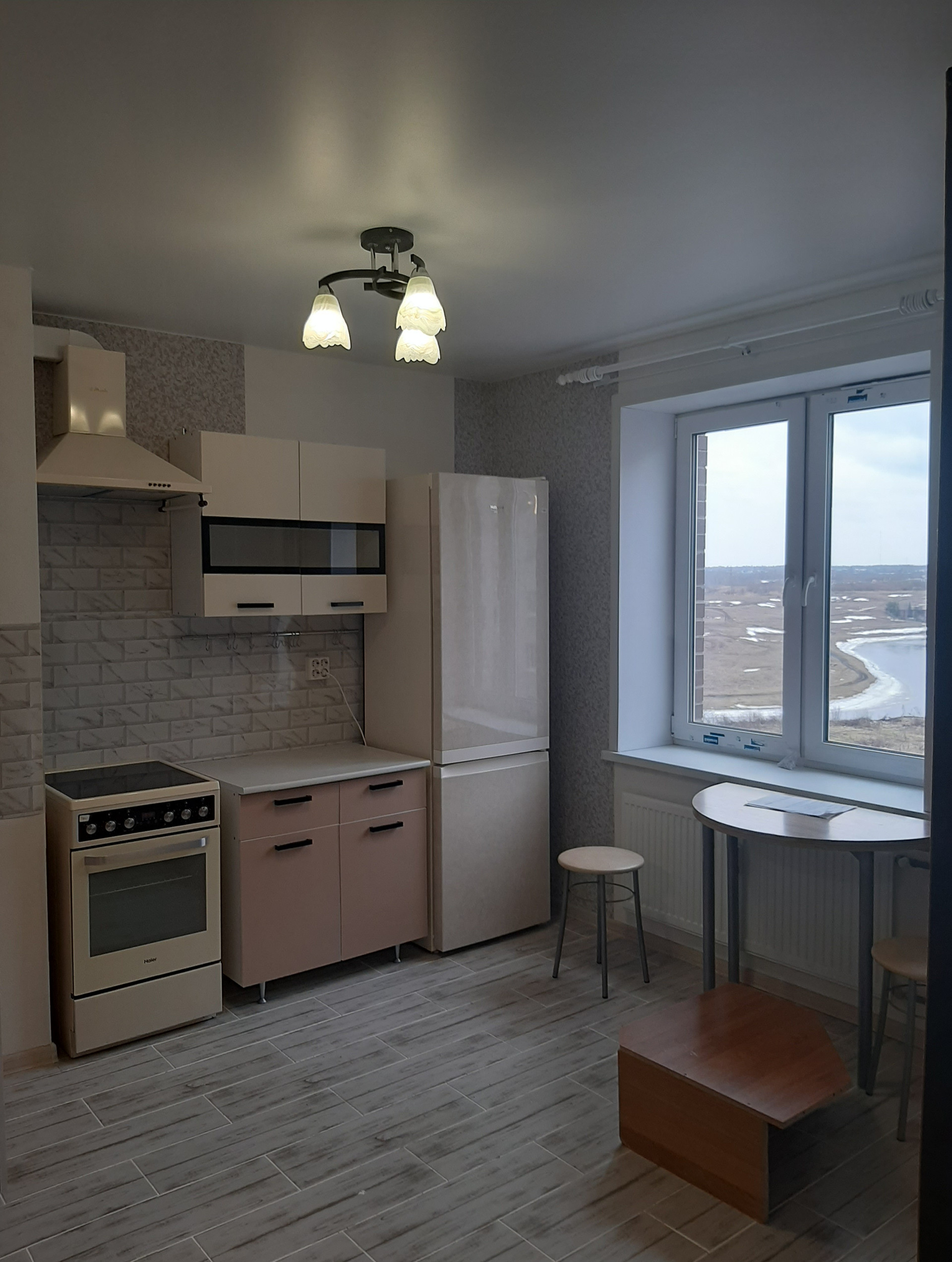 Квартира оборудована новой кухней, электро плита, холодильник, стиральная машина, шкаф, в ванной душевая кабинка.