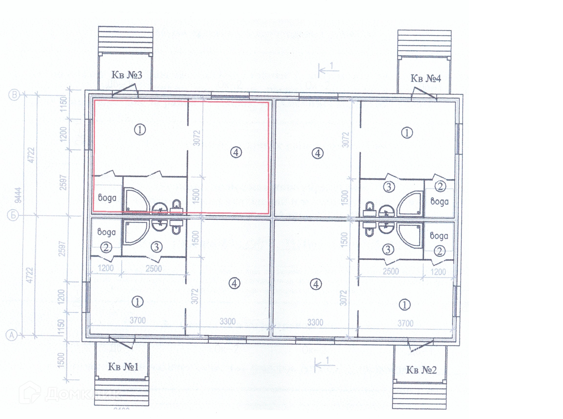 1 комнатная квартира в 4 квартирном жилом доме на земельном участке.