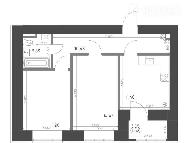Площадь кухни 11.4 м2