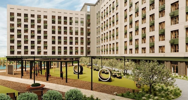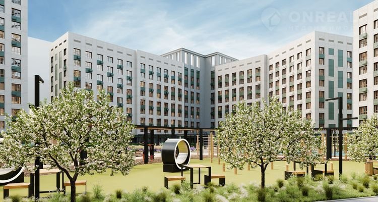 Территория комплекса продумана для жизни и отдыха: здесь есть зоны для тренировок, прогулочные дорожки и игровые площадки. Вы сможете найти уголок для уединения или провести время с соседями.