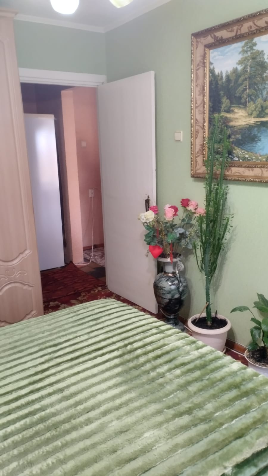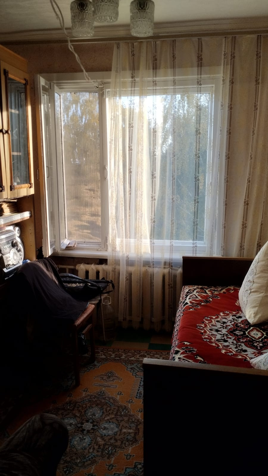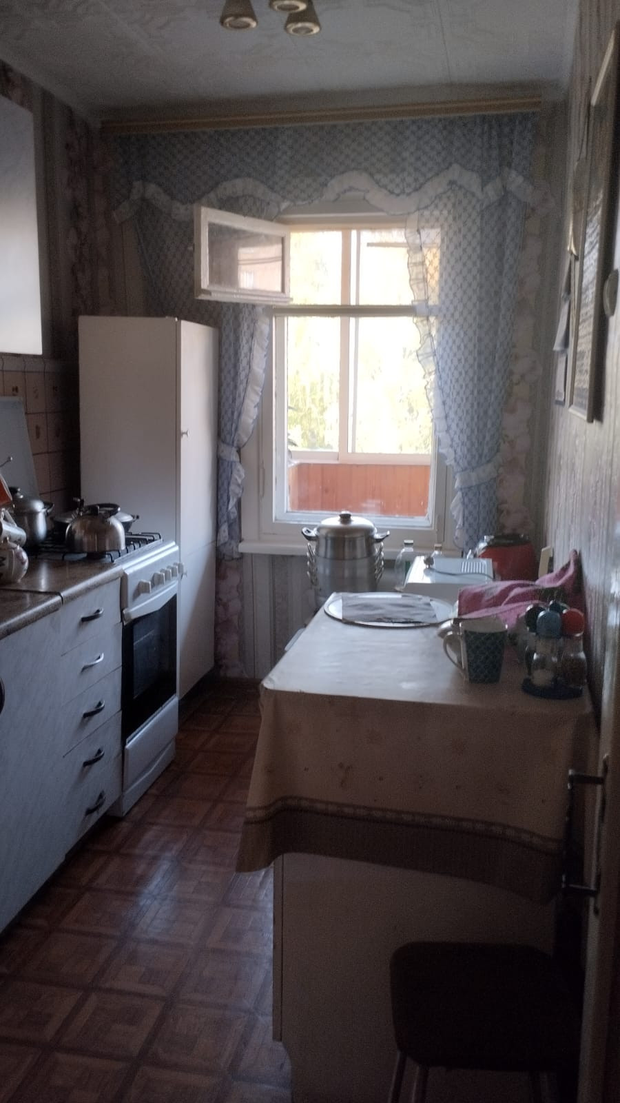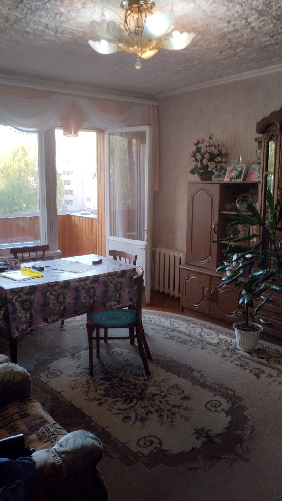 Удобная планировка разнарядка, с обычным ремонтом, 1 балкон 6 метровый застеклен и обшит, который смотрит на подъезд.