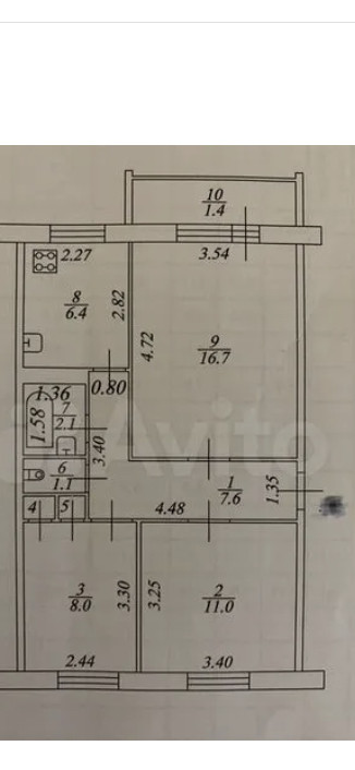 Общая площадь 54 м2