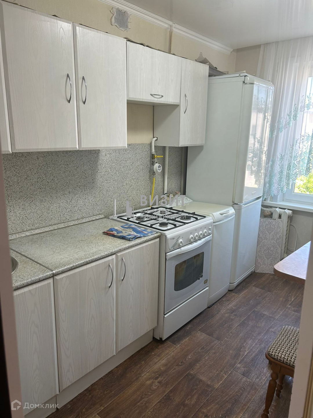 В квартире остается шкаф - купе, кухонный гарнитур, холодильник.